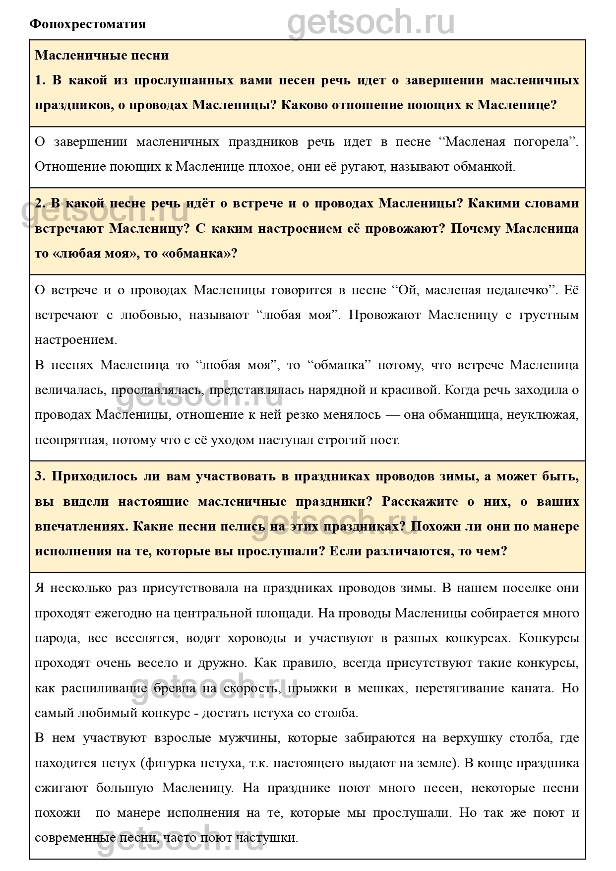 Приходилось ли вам участвовать в праздниках проводов зимы, а может быть, вы видели настоящие масленичные праздники? Расскажите о них, о ваших впечатлениях. Какие песни пелись на этих праздниках? Похожи ли они по манере исполнения на те, которые вы прослушали? Если различаются, то чем?