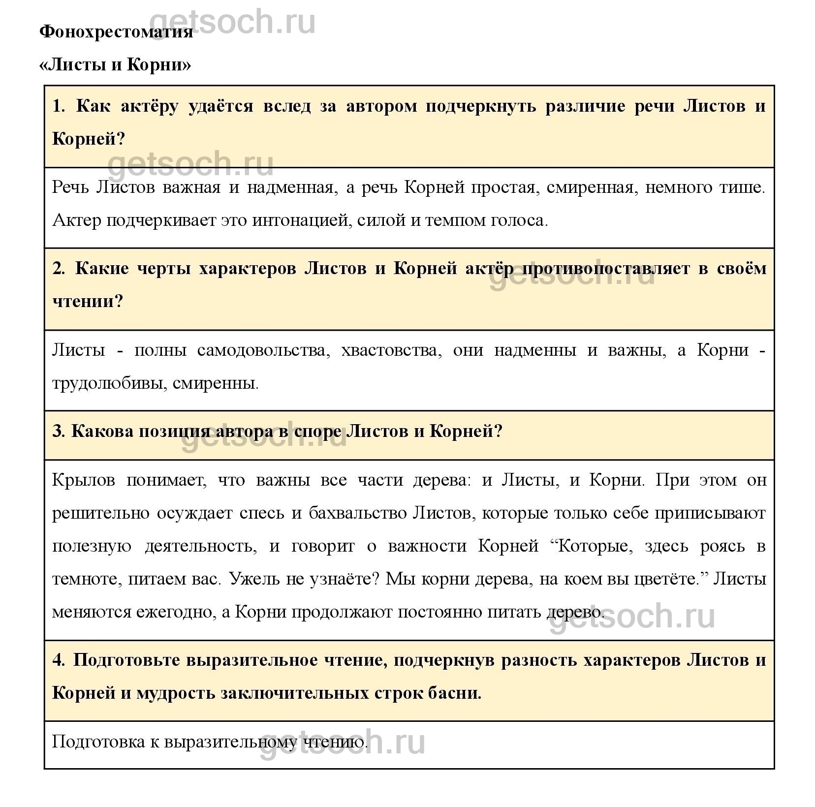 Подготовьте выразительное чтение, подчеркнув разность характеров Листов и Корней и мудрость заключительных строк басни.