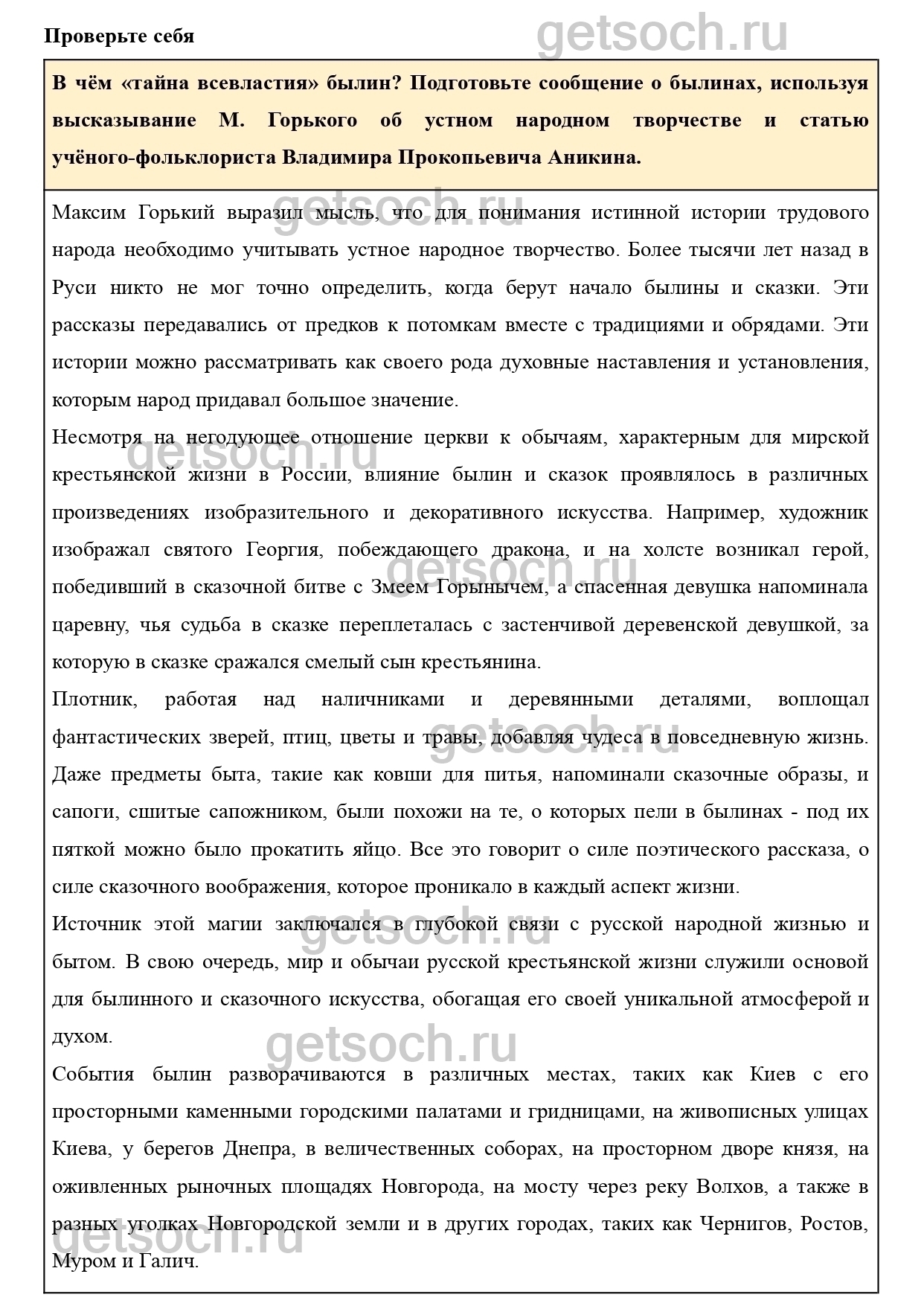 В чём «тайна всевластия» былин? Подготовьте сообщение о былинах, используя высказывание М. Горького об устном народном творчестве и статью учёного-фольклориста Владимира Прокопьевича Аникина.
