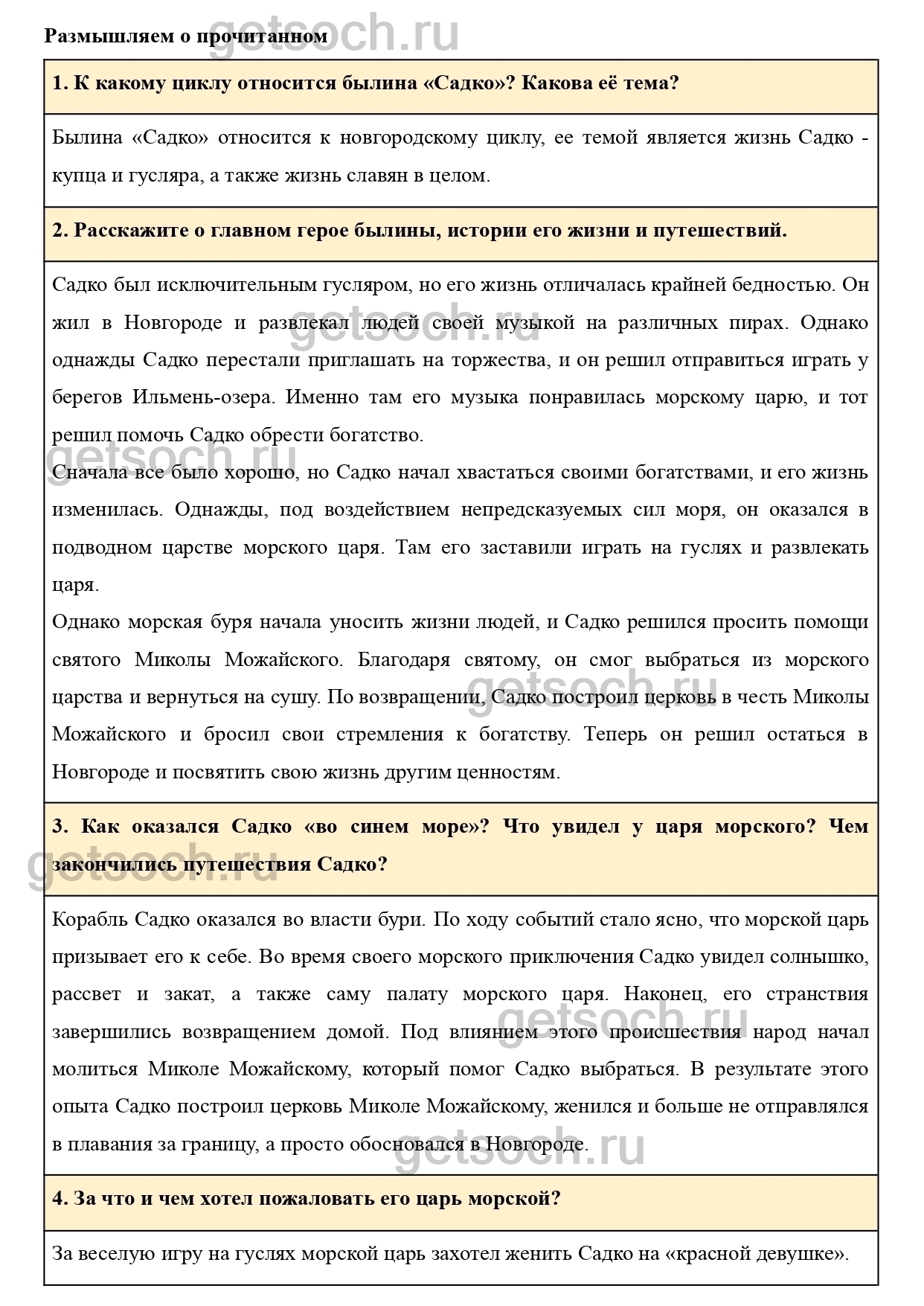 Как оказался Садко «во синем море»? Что увидел у царя морского? Чем закончились путешествия Садко?