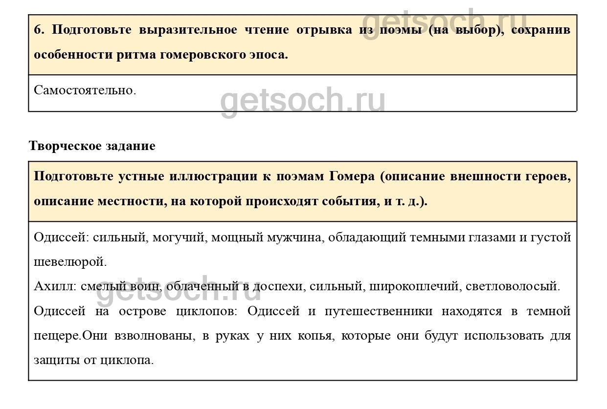 Подготовьте устные иллюстрации к поэмам Гомера (описание внешности героев, описание местности, на которой происходят события, и т. д.).