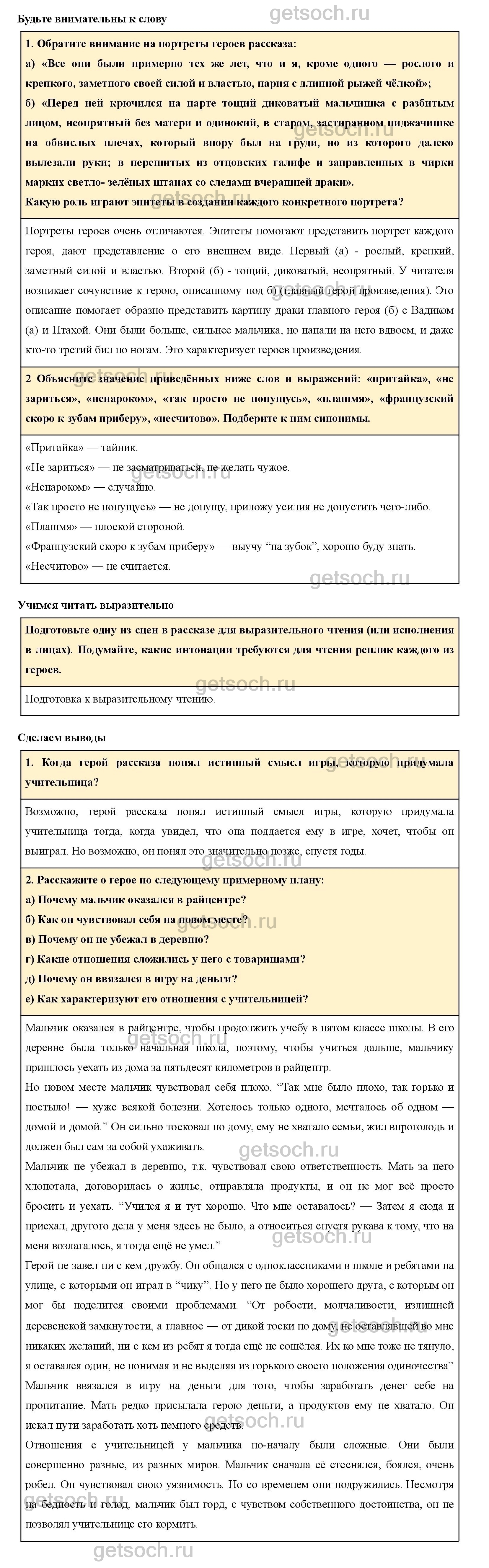 Подготовьте одну из сцен в рассказе для выразительного чтения (или исполнения в лицах). Подумайте, какие интонации требуются для чтения реплик каждого из героев.