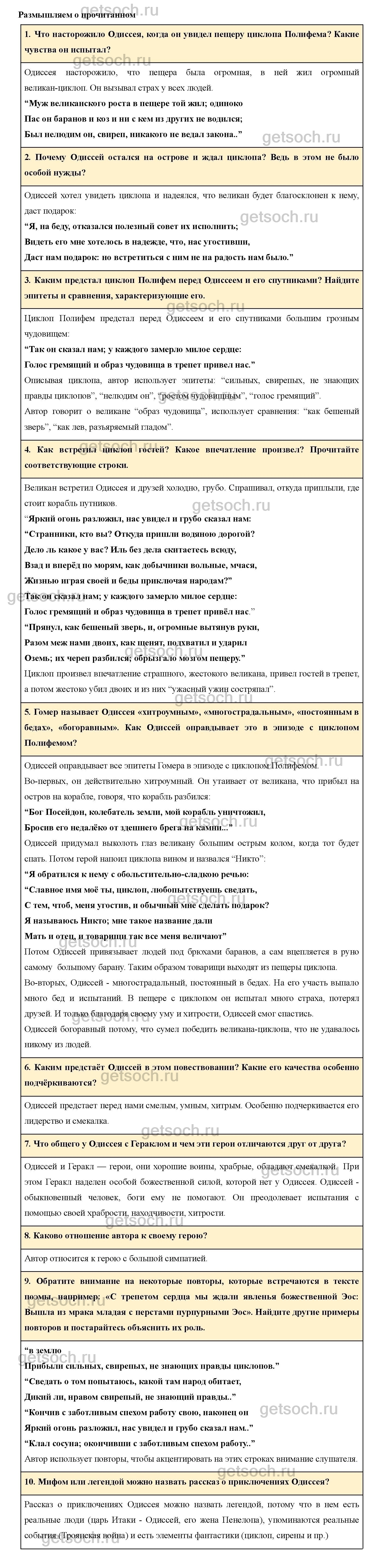 Как встретил циклоп гостей? Какое впечатление произвел? Прочитайте соответствующие строки.