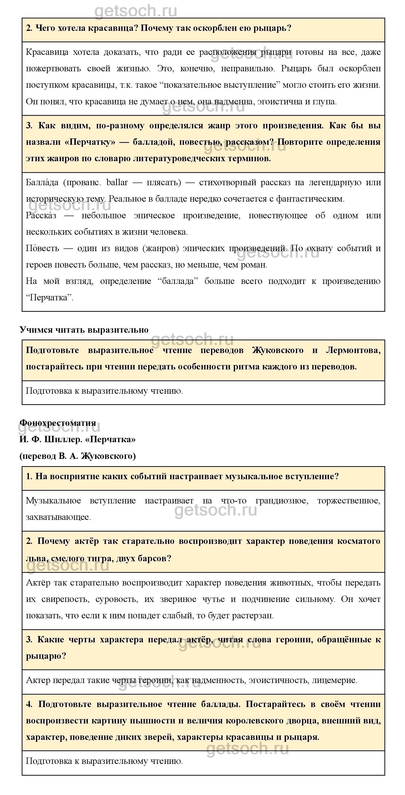 Как видим, по-разному определялся жанр этого произведения. Как бы вы назвали «Перчатку» — балладой, повестью, рассказом? Повторите определения этих жанров по словарю литературоведческих терминов.