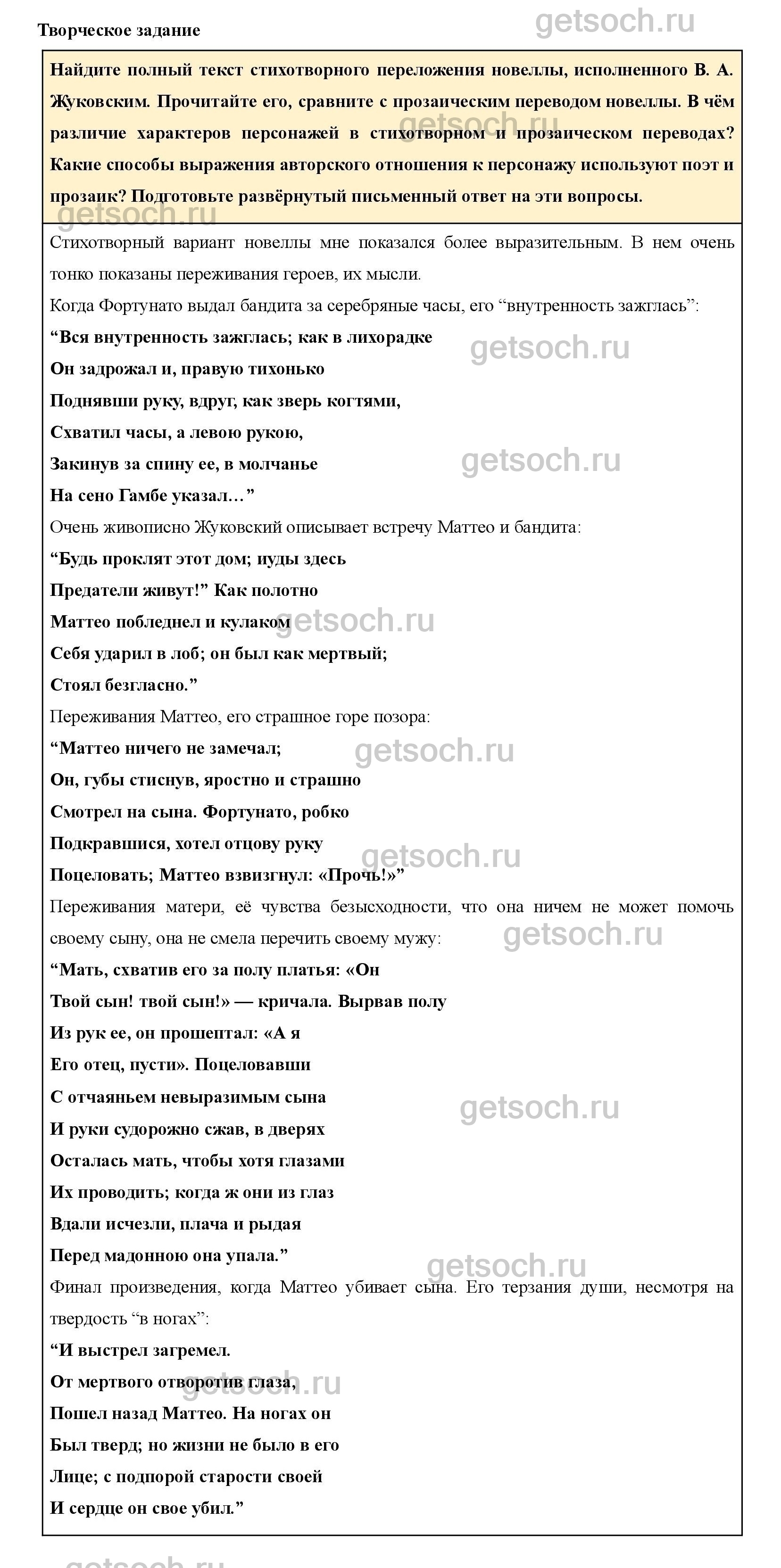 Найдите полный текст стихотворного переложения новеллы, исполненного В. А. Жуковским. Прочитайте его, сравните с прозаическим переводом новеллы. В чём различие характеров персонажей в стихотворном и прозаическом переводах? Какие способы выражения авторского отношения к персонажу используют поэт и прозаик? Подготовьте развёрнутый письменный ответ на эти вопросы.