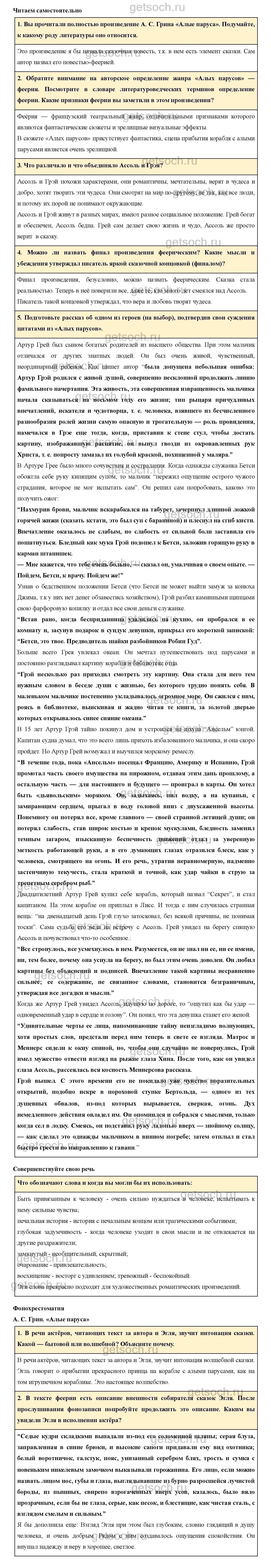 Обратите внимание на авторское определение жанра «Алых парусов» — феерия. Посмотрите в словаре литературоведческих терминов определение феерии. Какие признаки феерии вы заметили в этом произведении?