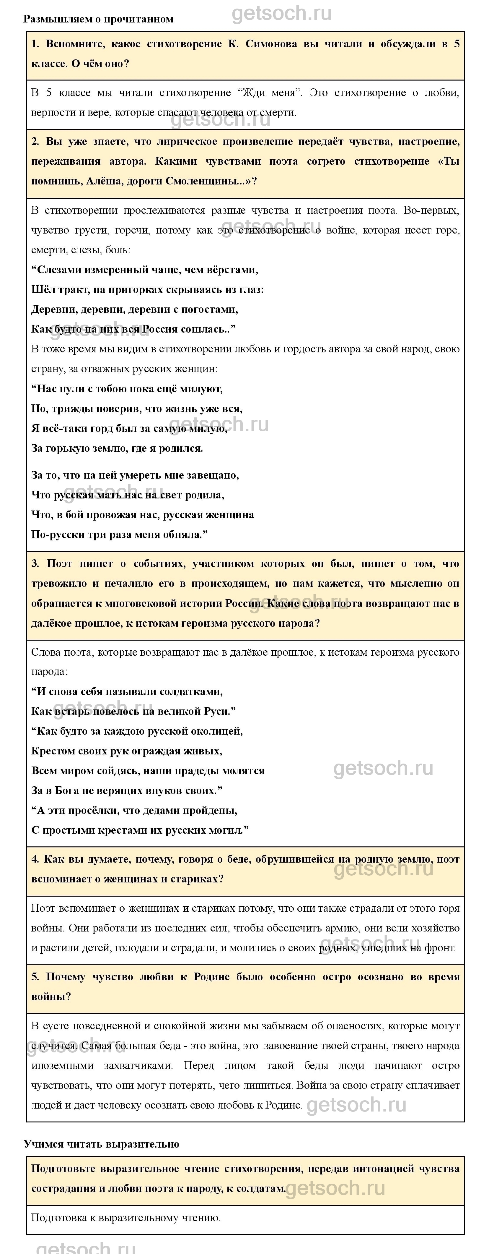 Вспомните, какое стихотворение К. Симонова вы читали и обсуждали в 5 классе. О чём оно?