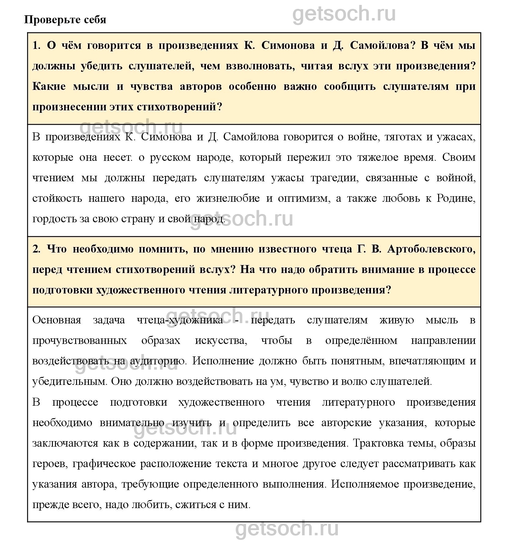О чём говорится в произведениях К. Симонова и Д. Самойлова? В чём мы должны убедить слушателей, чем взволновать, читая вслух эти произведения? Какие мысли и чувства авторов особенно важно сообщить слушателям при произнесении этих стихотворений?