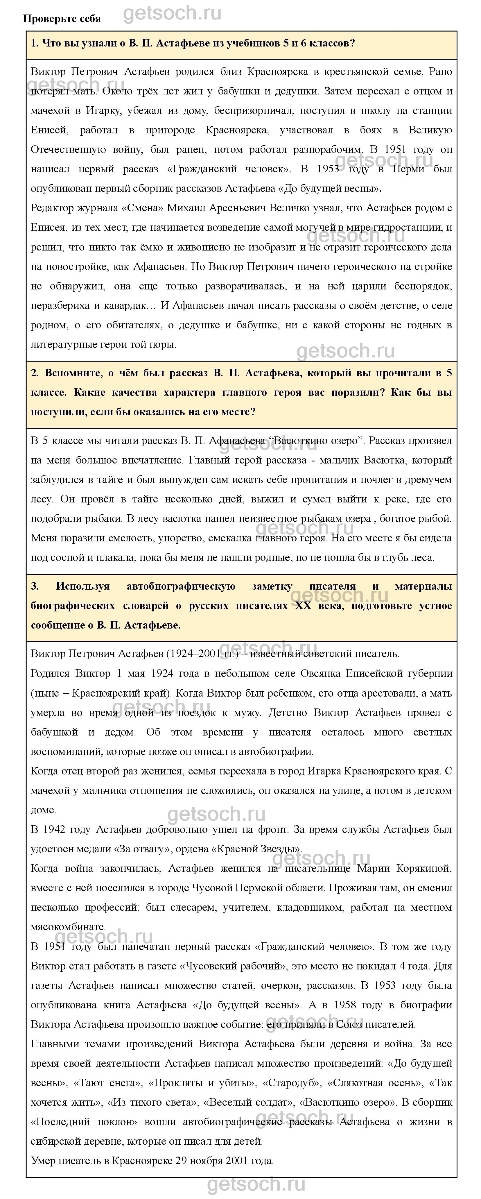 Используя автобиографическую заметку писателя и материалы биографических словарей о русских писателях XX века, подготовьте устное сообщение о В. П. Астафьеве.