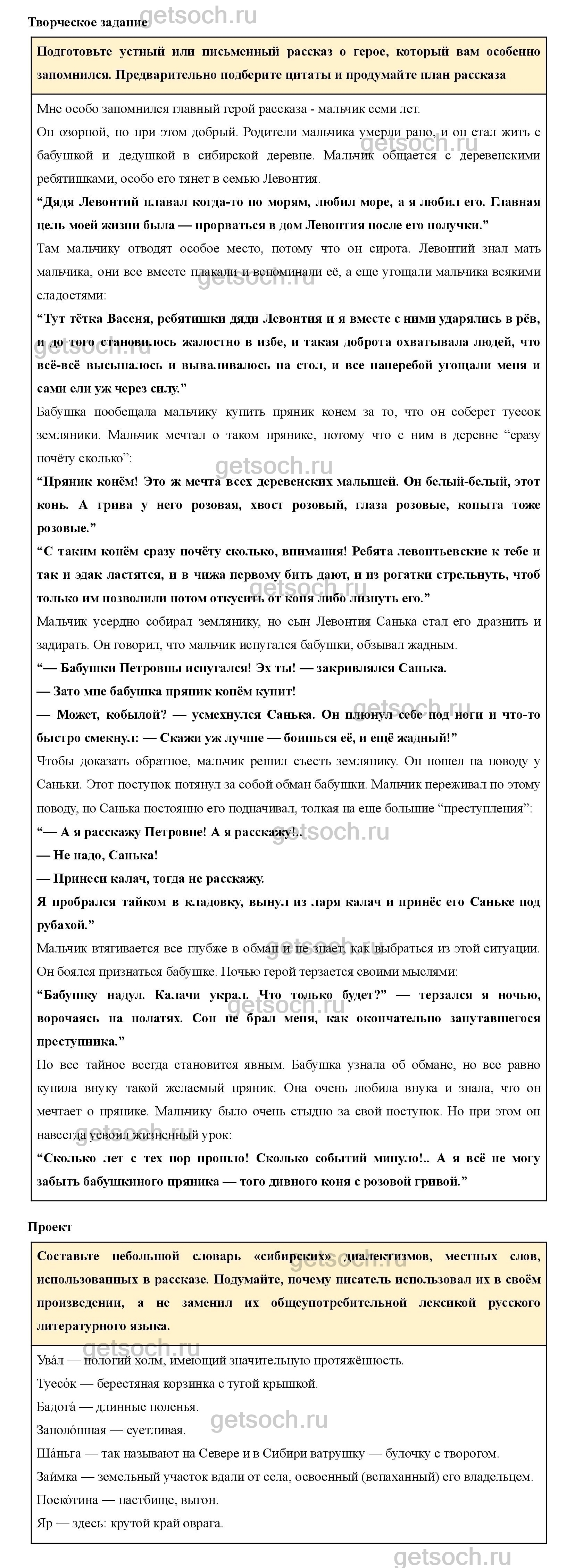 Составьте небольшой словарь «сибирских» диалектизмов, местных слов, использованных в рассказе. Подумайте, почему писатель использовал их в своём произведении, а не заменил их общеупотребительной лексикой русского литературного языка.