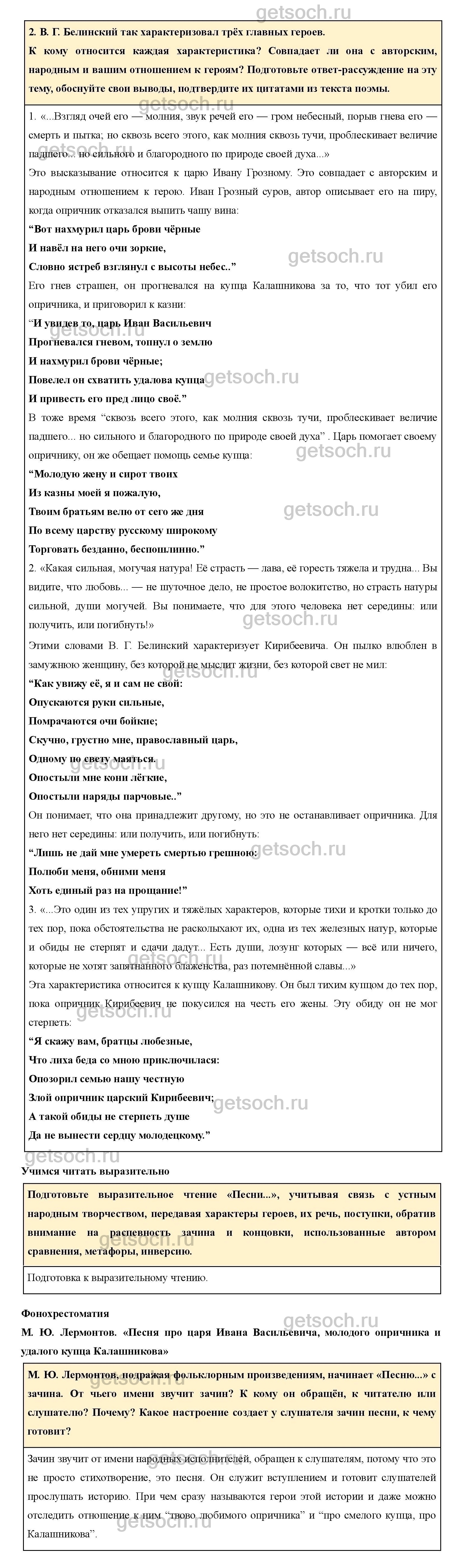 Подготовьте выразительное чтение «Песни…», учитывая связь с устным народным творчеством, передавая характеры героев, их речь, поступки, обратив внимание на распевность зачина и концовки, использованные автором сравнения, метафоры, инверсию.