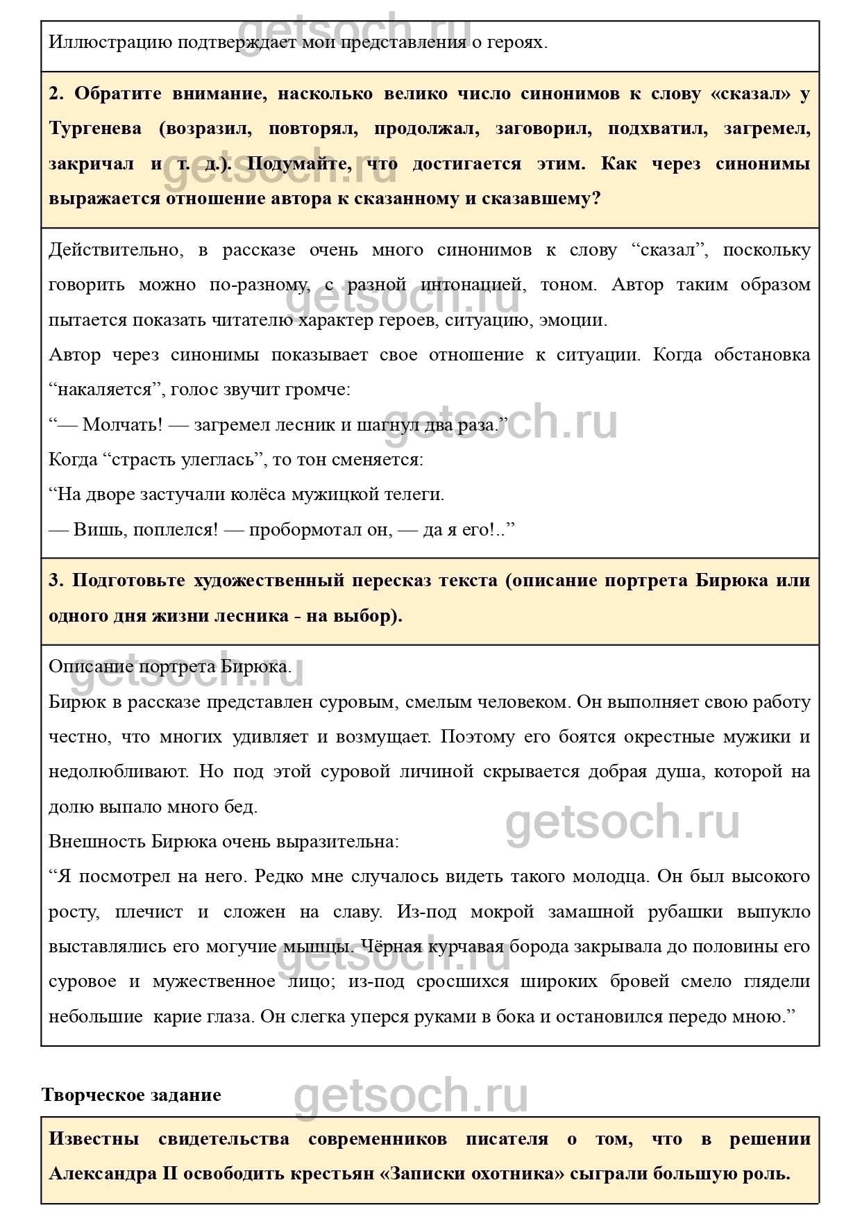 Подготовьте художественный пересказ текста (описание портрета Бирюка или одного дня жизни лесника – на выбор).