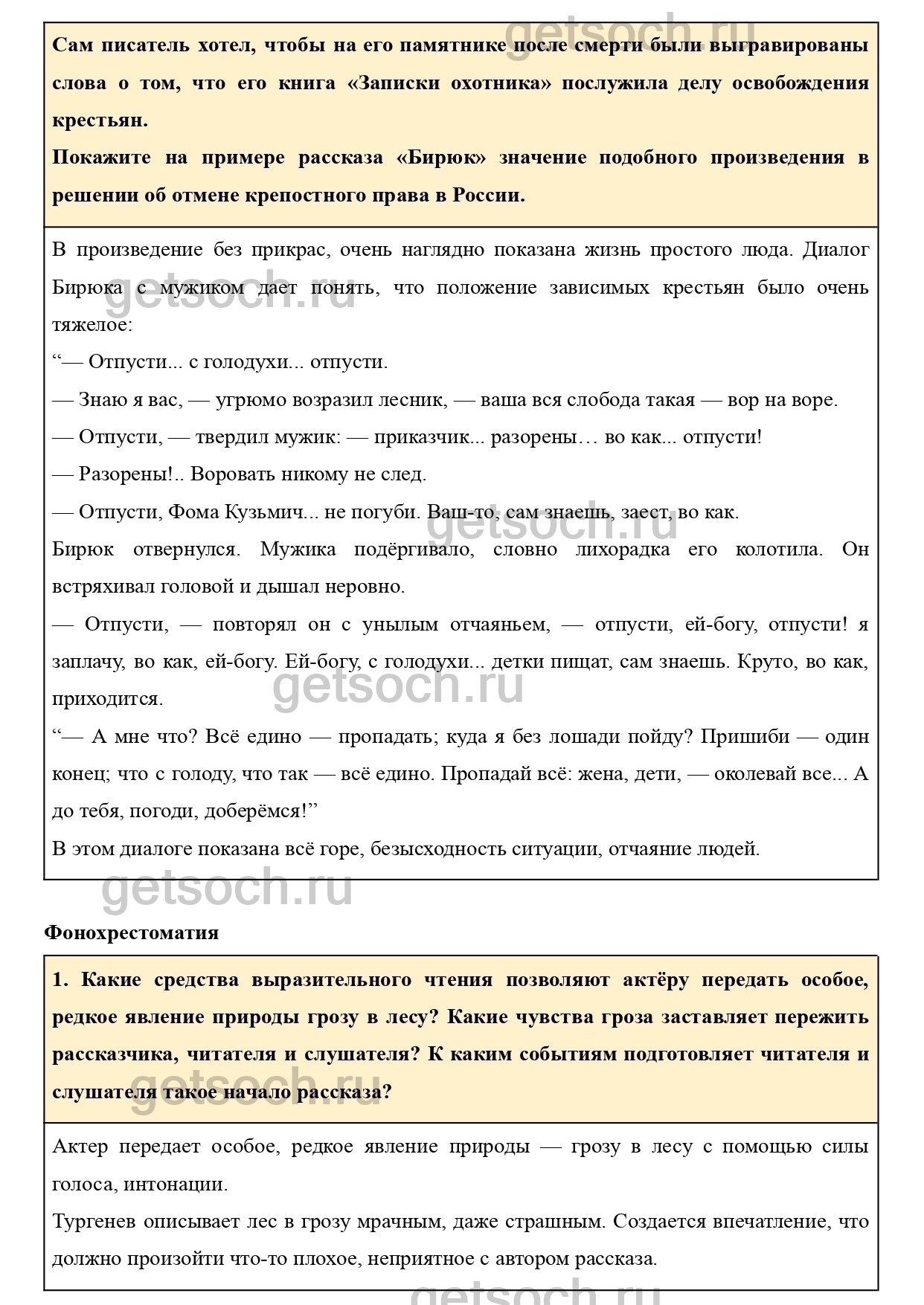 Покажите на примере рассказа «Бирюк» значение подобного произведения в решении об отмене крепостного права в России. Какие средства выразительного чтения позволяют актёру передать особое, редкое явление природы грозу в лесу? Какие чувства гроза заставляет пережить рассказчика, читателя и слушателя? К каким событиям подготовляет читателя и слушателя такое начало рассказа?