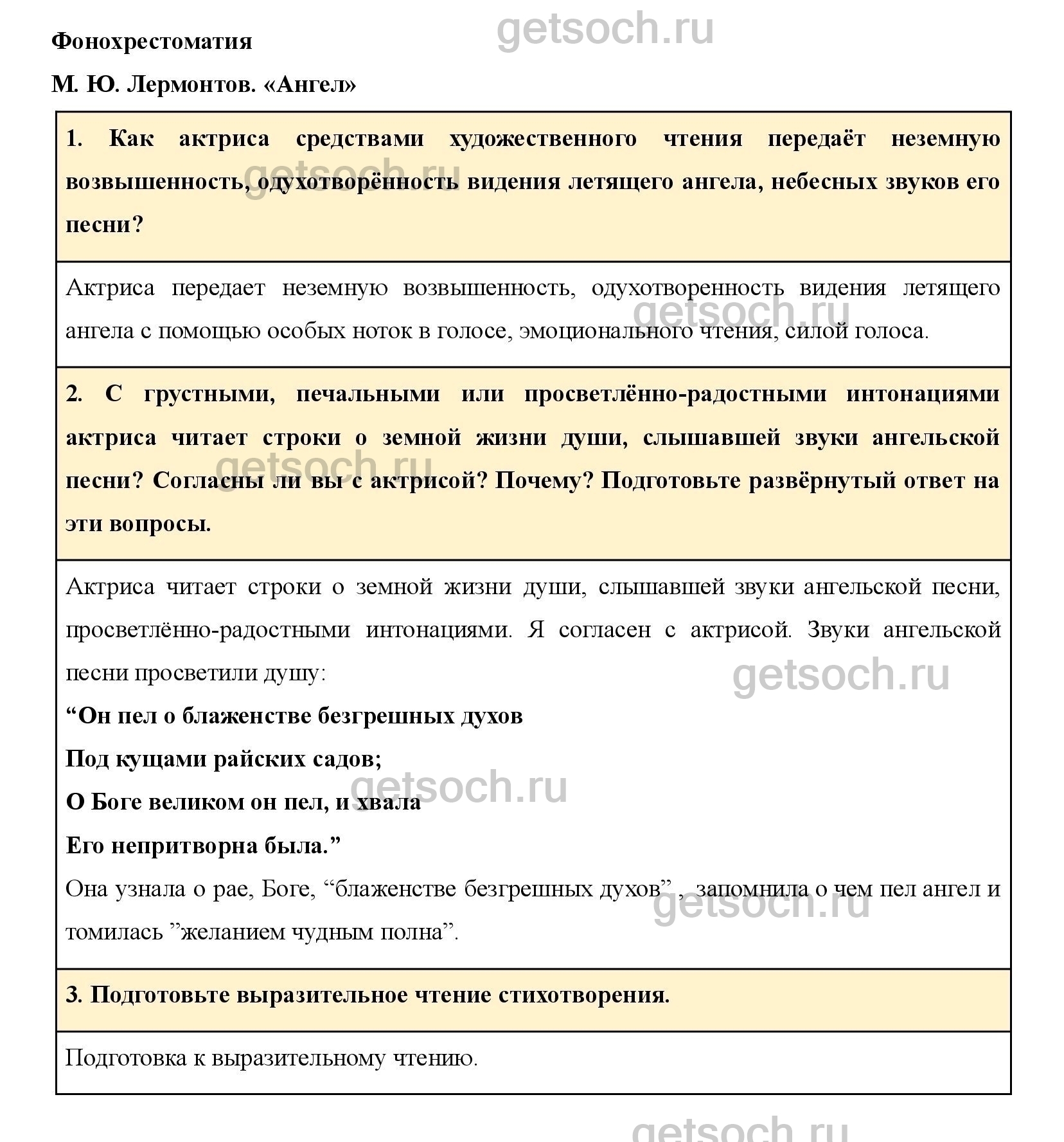 2. С грустными, печальными или просветлённо-радостными интонациями актриса читает строки о земной жизни души, слышавшей звуки ангельской песни? Согласны ли вы с актрисой? Почему? Подготовьте развёрнутый ответ на эти вопросы.