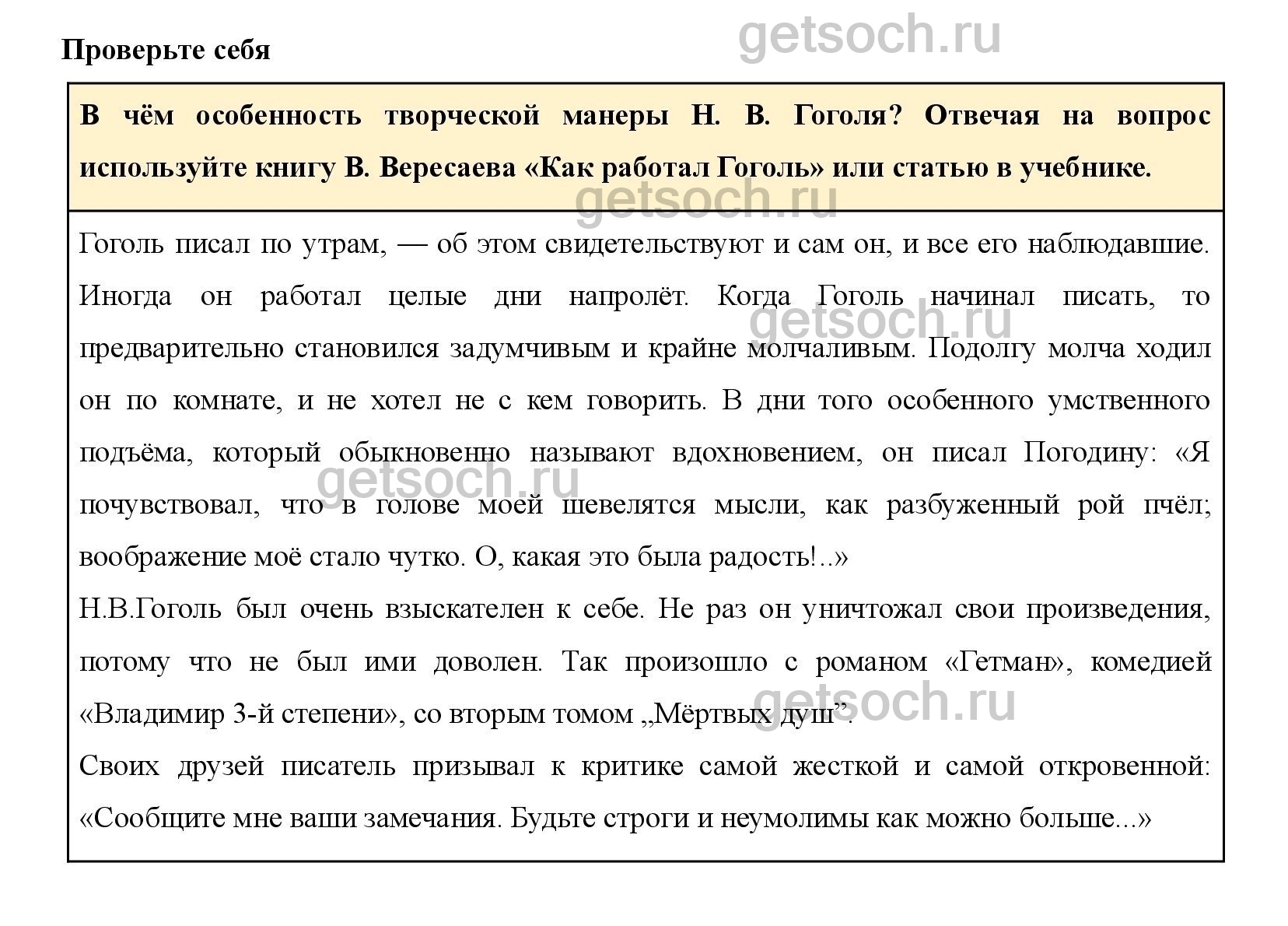В чём особенность творческой манеры Н. В. Гоголя? Отвечая на вопрос используйте книгу В. Вересаева «Как работал Гоголь» или статью в учебнике.