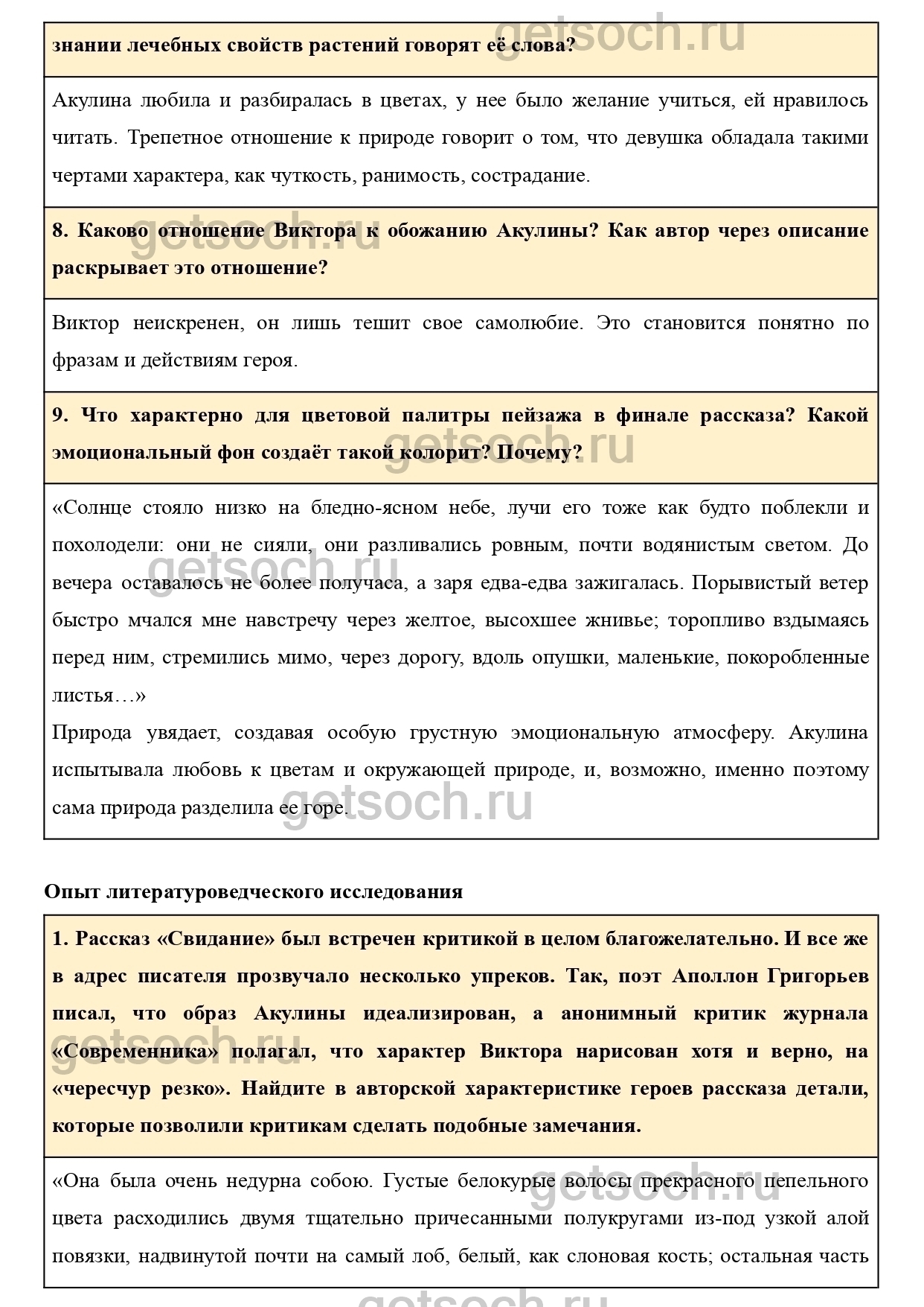 Рассказ «Свидание» был встречен критикой в целом благожелательно. И все же в адрес писателя прозвучало несколько упреков. Так, поэт Аполлон Григорьев писал, что образ Акулины идеализирован, а анонимный критик журнала «Современника» полагал, что характер Виктора нарисован хотя и верно, на «чересчур резко». Найдите в авторской характеристике героев рассказа детали, которые позволили критикам сделать подобные замечания.