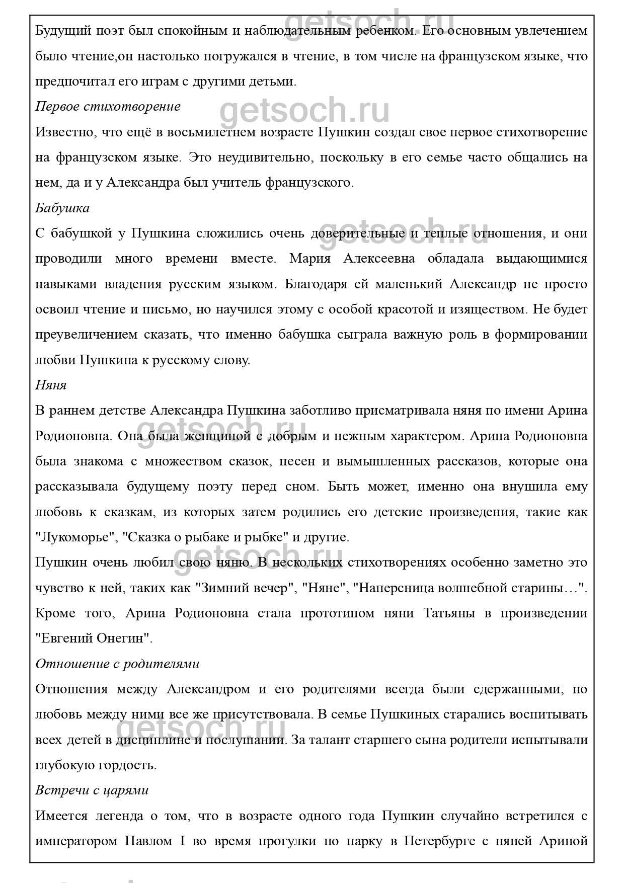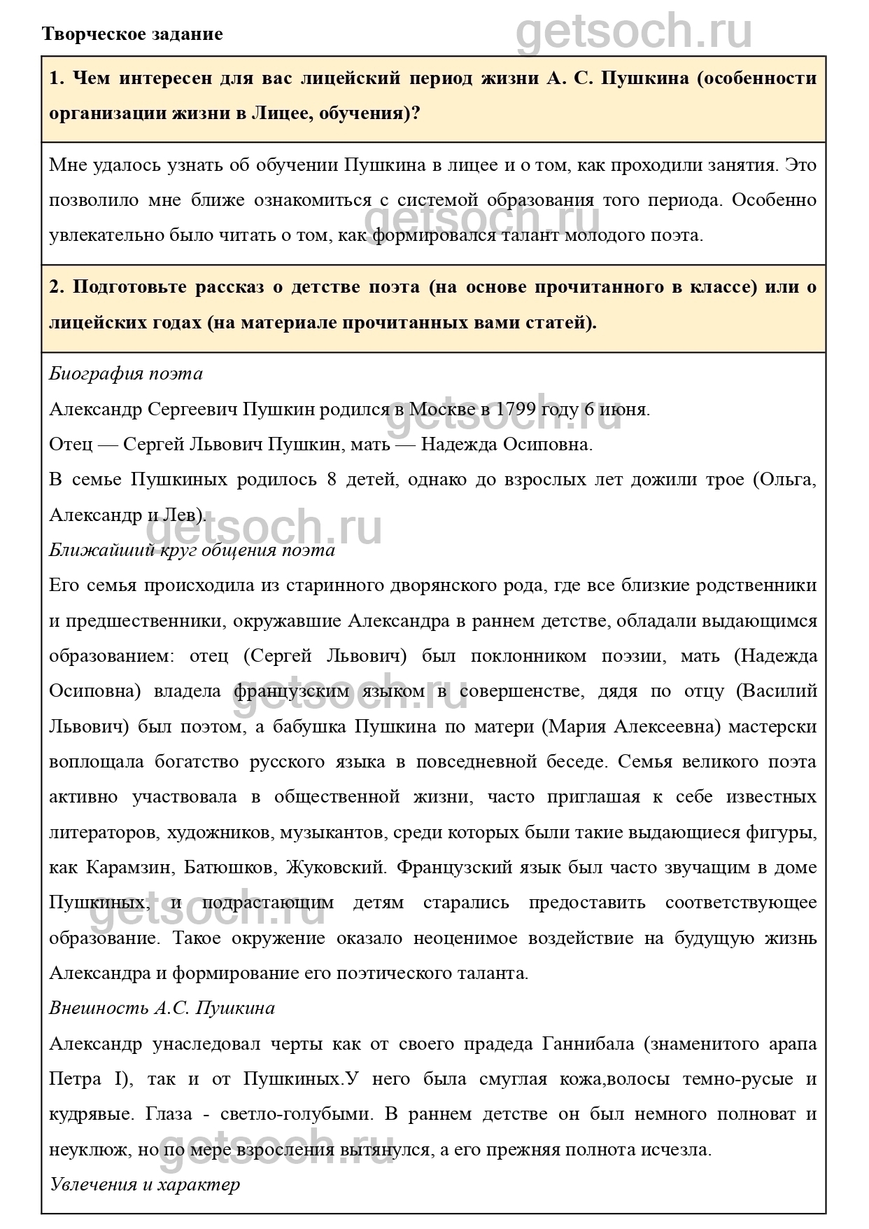 Подготовьте рассказ о детстве поэта (на основе прочитанного в классе) или о лицейских годах (на материале прочитанных вами статей).