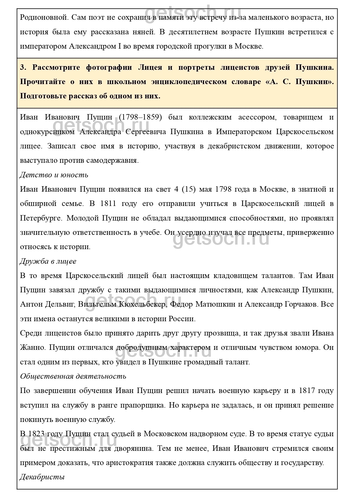 Рассмотрите фотографии Лицея и портреты лицеистов друзей Пушкина. Прочитайте о них в школьном энциклопедическом словаре «А. С. Пушкин». Подготовьте рассказ об одном из них.