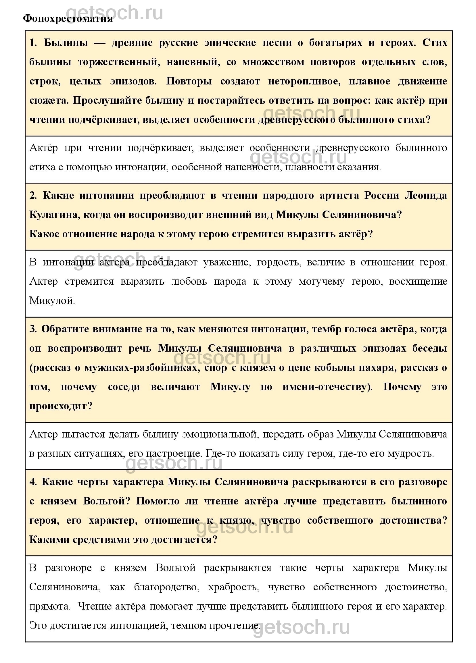 4. Какие черты характера Микулы Селяниновича раскрываются в его разговоре с князем Вольгой? Помогло ли чтение актёра лучше представить былинного героя, его характер, отношение к князю, чувство собственного достоинства? Какими средствами это достигается?