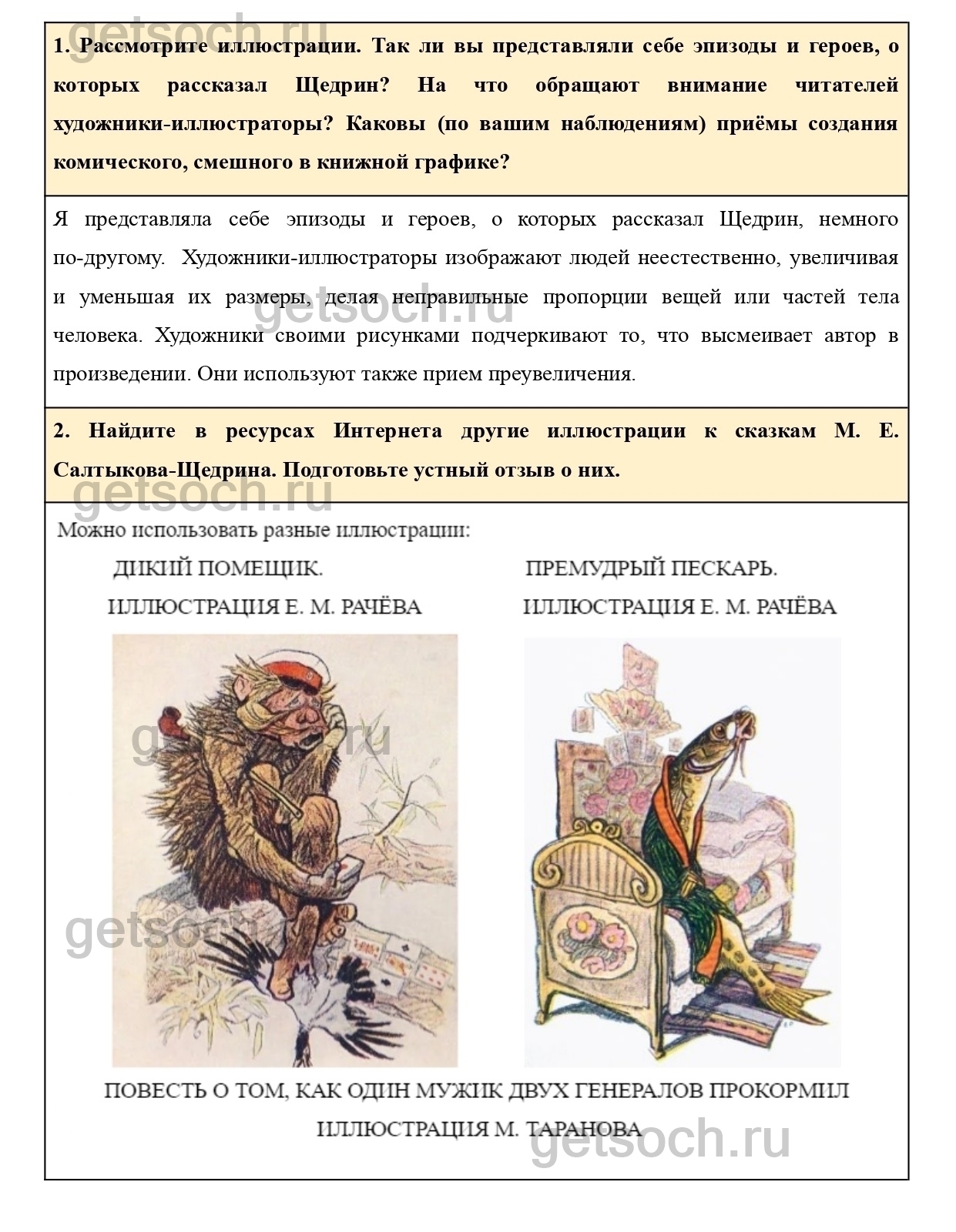 Рассмотрите иллюстрации. Так ли вы представляли себе эпизоды и героев, о которых рассказал Щедрин? На что обращают внимание читателей художники-иллюстраторы? Каковы (по вашим наблюдениям) приёмы создания комического, смешного в книжной графике?