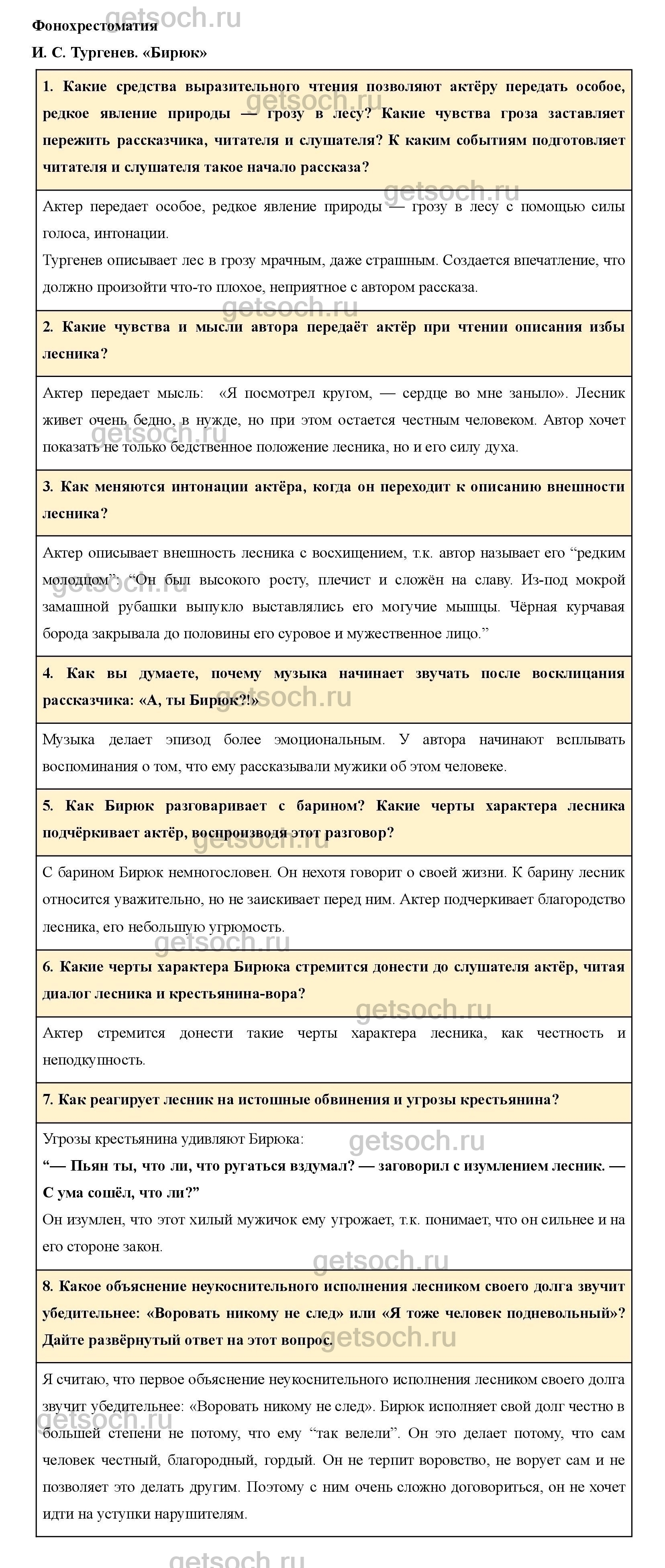 5. Как Бирюк разговаривает с барином? Какие черты характера лесника подчёркивает актёр, воспроизводя этот разговор?