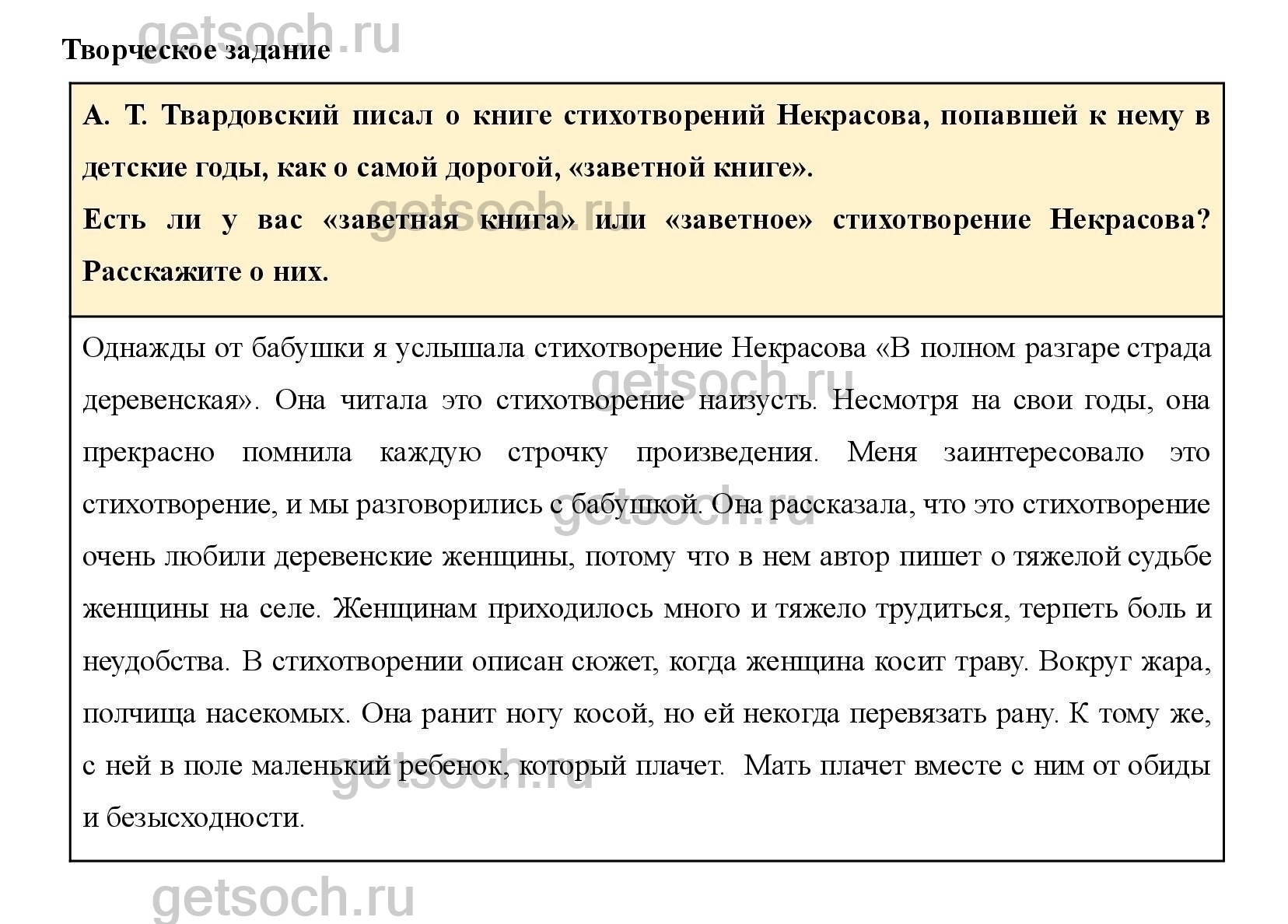 “А. Т. Твардовский писал о книге стихотворений Некрасова, попавшей к нему в детские годы, как о самой дорогой, «заветной книге».