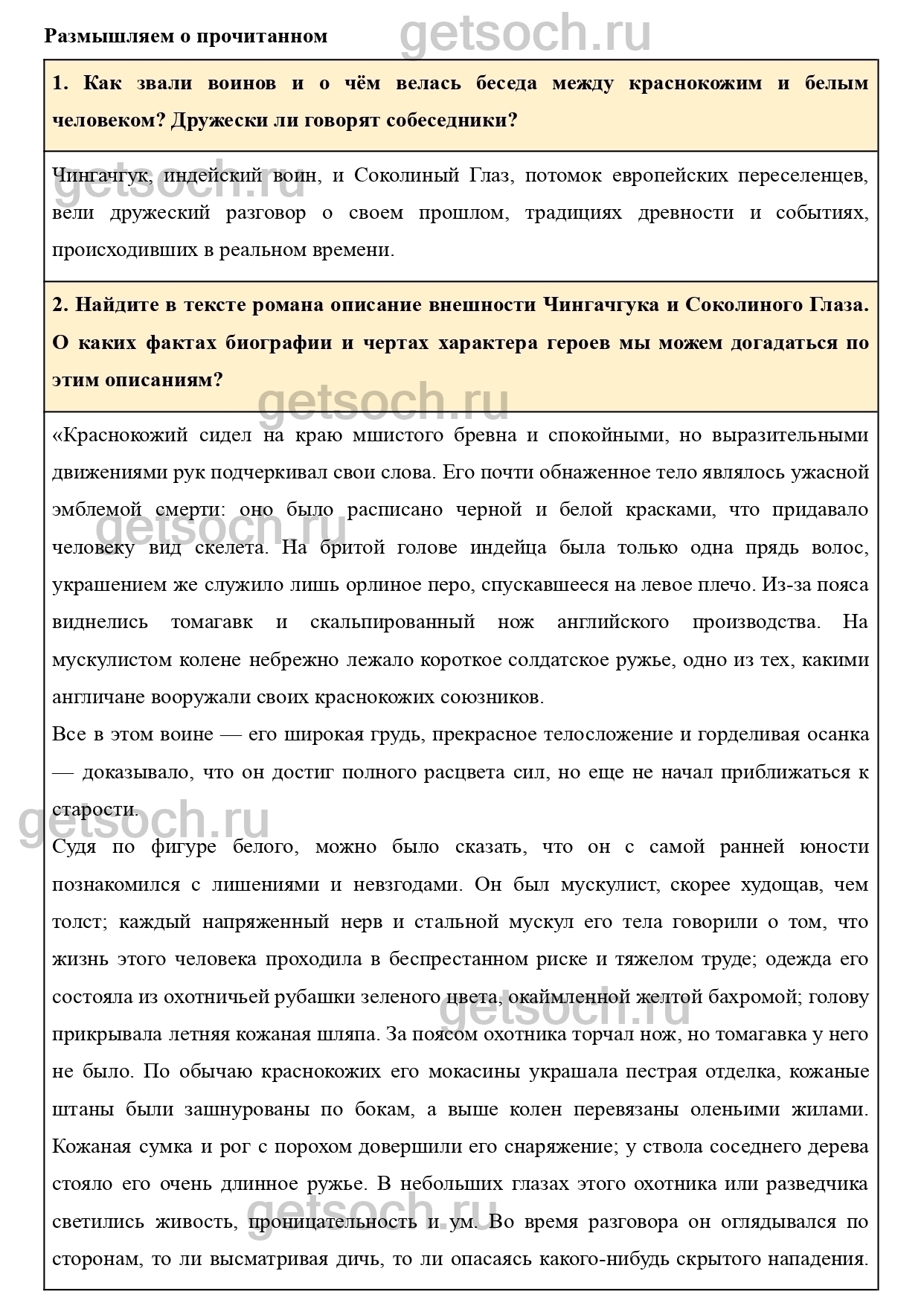Найдите в тексте романа описание внешности Чингачгука и Соколиного Глаза. О каких фактах биографии и чертах характера героев мы можем догадаться по этим описаниям?