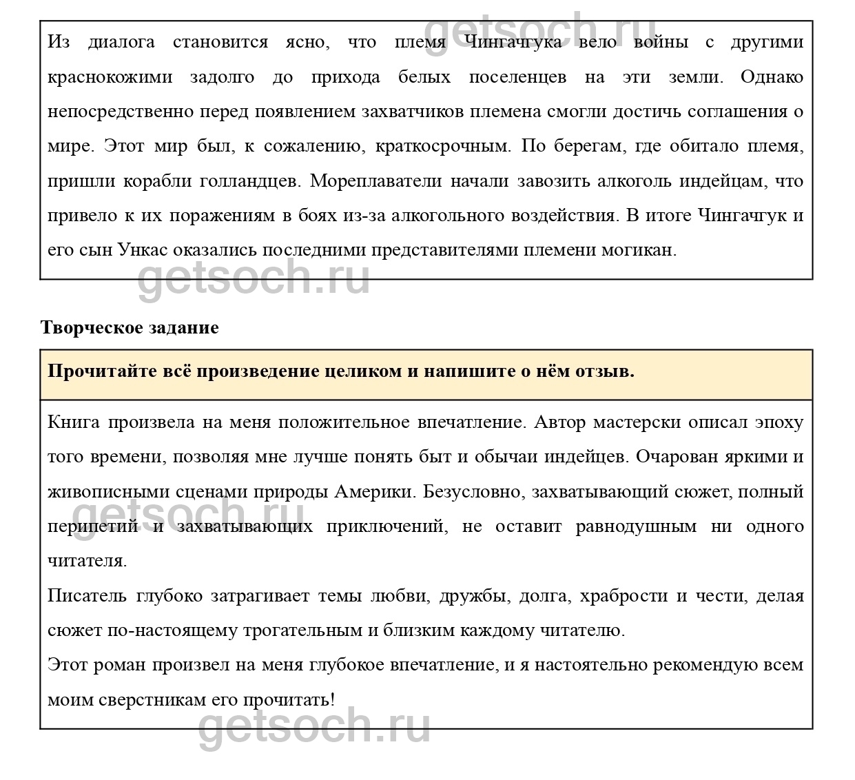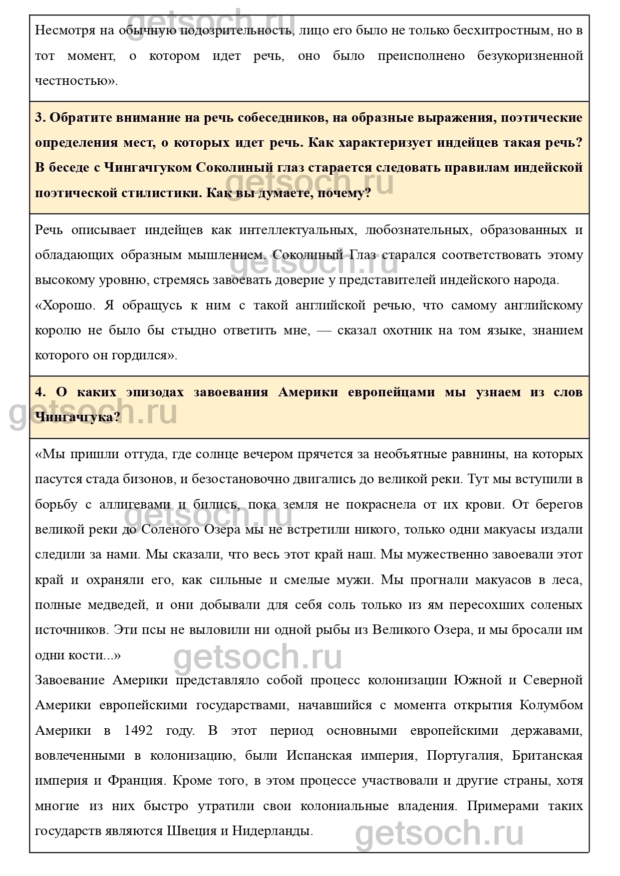 Обратите внимание на речь собеседников, на образные выражения, поэтические определения мест, о которых идет речь. Как характеризует индейцев такая речь? В беседе с Чингачгуком Соколиный глаз старается следовать правилам индейской поэтической стилистики. Как вы думаете, почему?