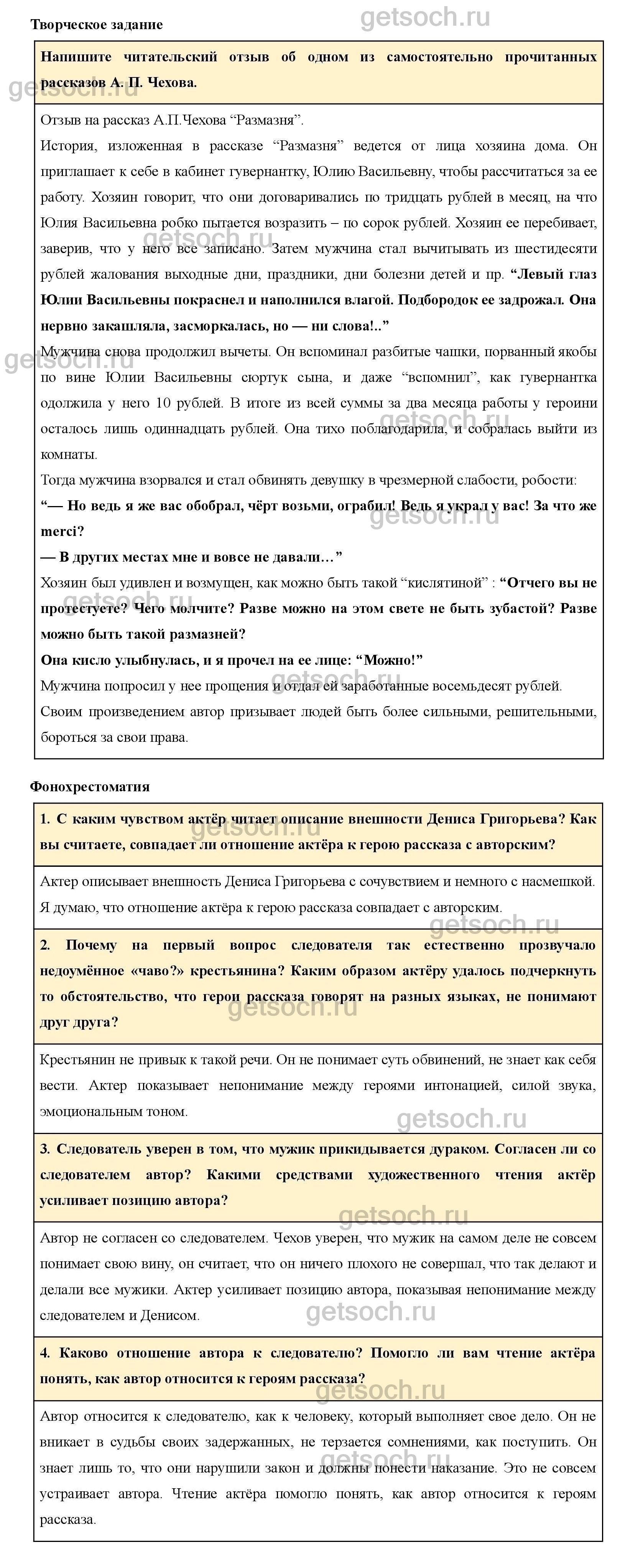 Напишите читательский отзыв об одном из самостоятельно прочитанных рассказов А. П. Чехова.