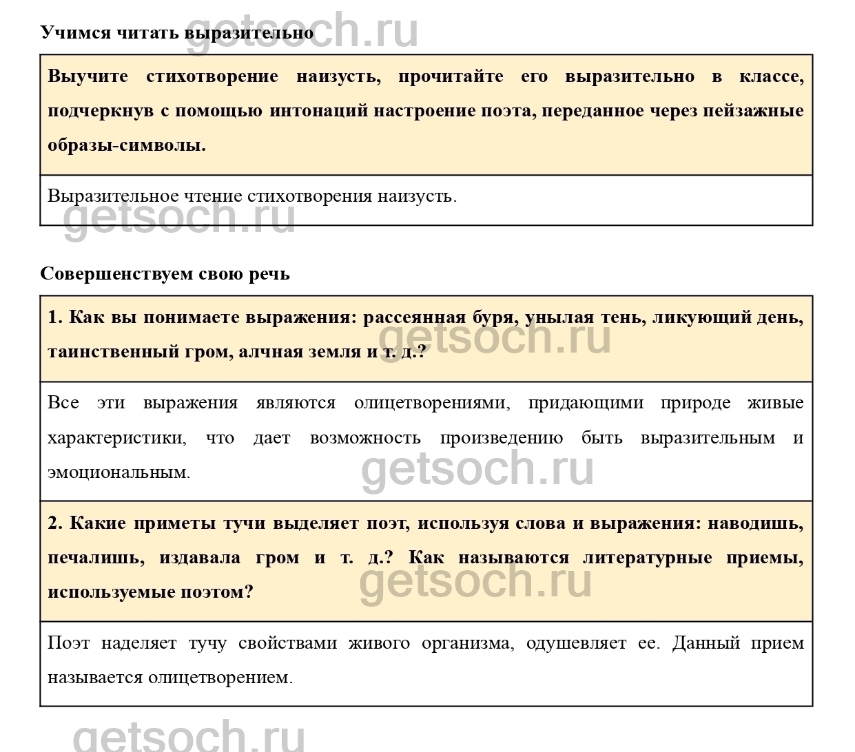Какие приметы тучи выделяет поэт, используя слова и выражения: наводишь, печалишь, издавала гром и т. д.? Как называются литературные приемы, используемые поэтом?