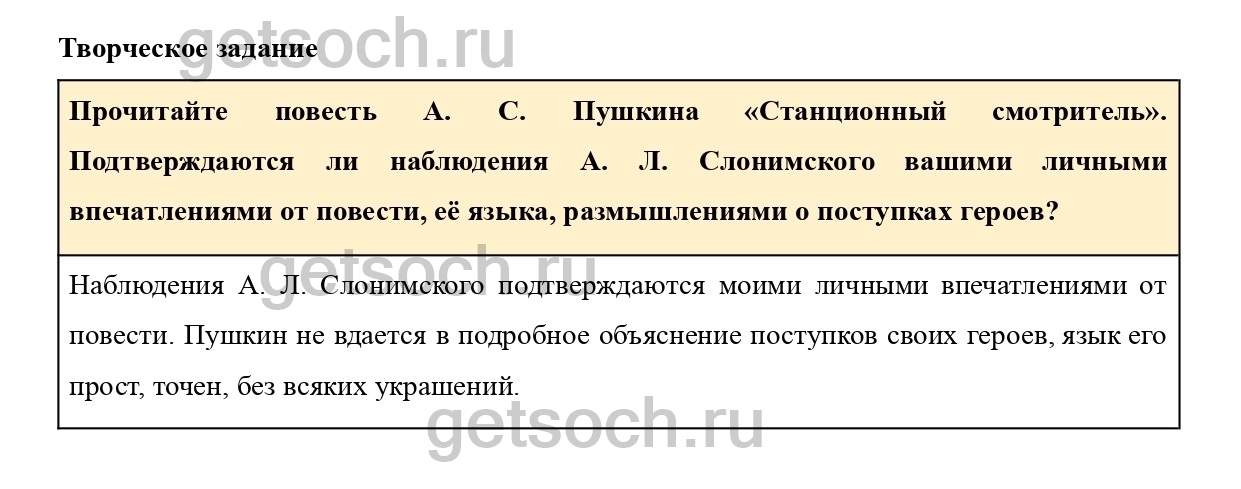 Прочитайте повесть А. С. Пушкина «Станционный смотритель». Подтверждаются ли наблюдения А. Л. Слонимского вашими личными впечатлениями от повести, её языка, размышлениями о поступках героев?