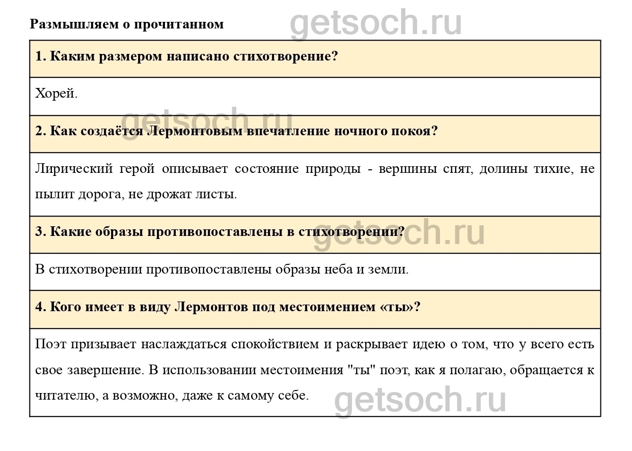Как создаётся Лермонтовым впечатление ночного покоя?