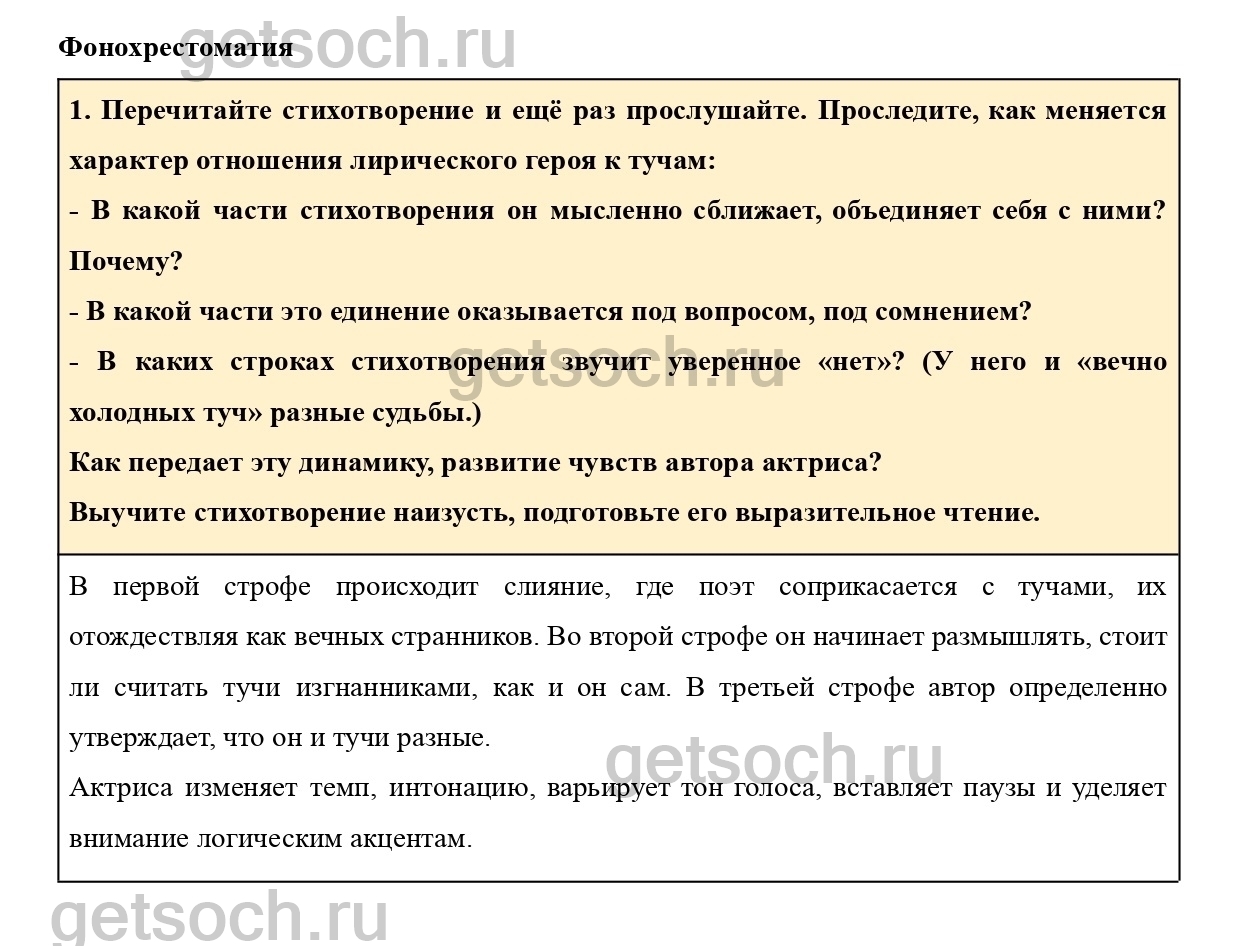 Перечитайте стихотворение и ещё раз прослушайте. Проследите, как меняется характер отношения лирического героя к тучам: