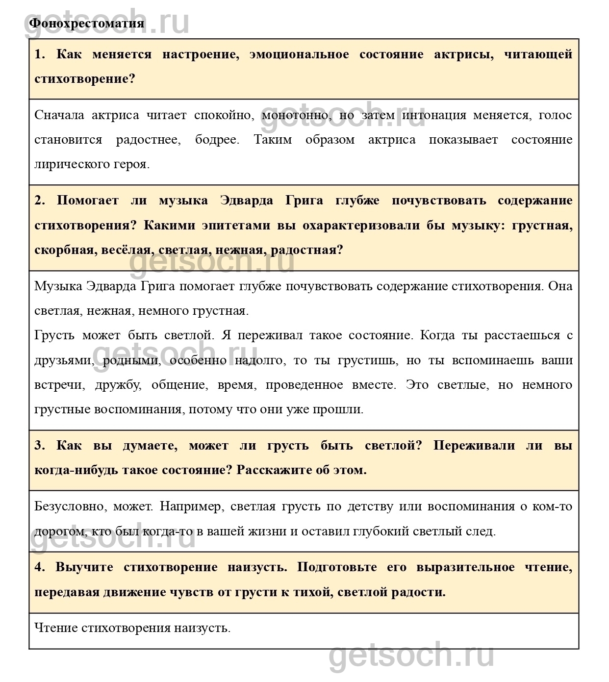 Выучите стихотворение наизусть. Подготовьте его выразительное чтение, передавая движение чувств от грусти к тихой, светлой радости.