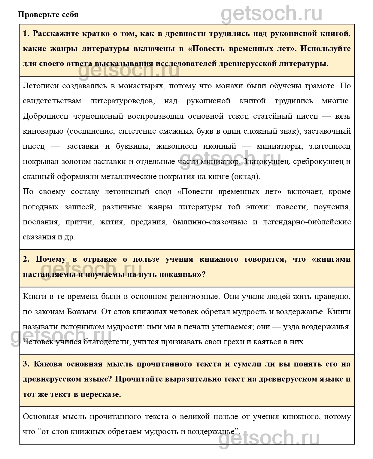 1. Расскажите кратко о том, как в древности трудились над рукописной книгой, какие жанры литературы включены в «Повесть временных лет». Используйте для своего ответа высказывания исследователей древнерусской литературы.