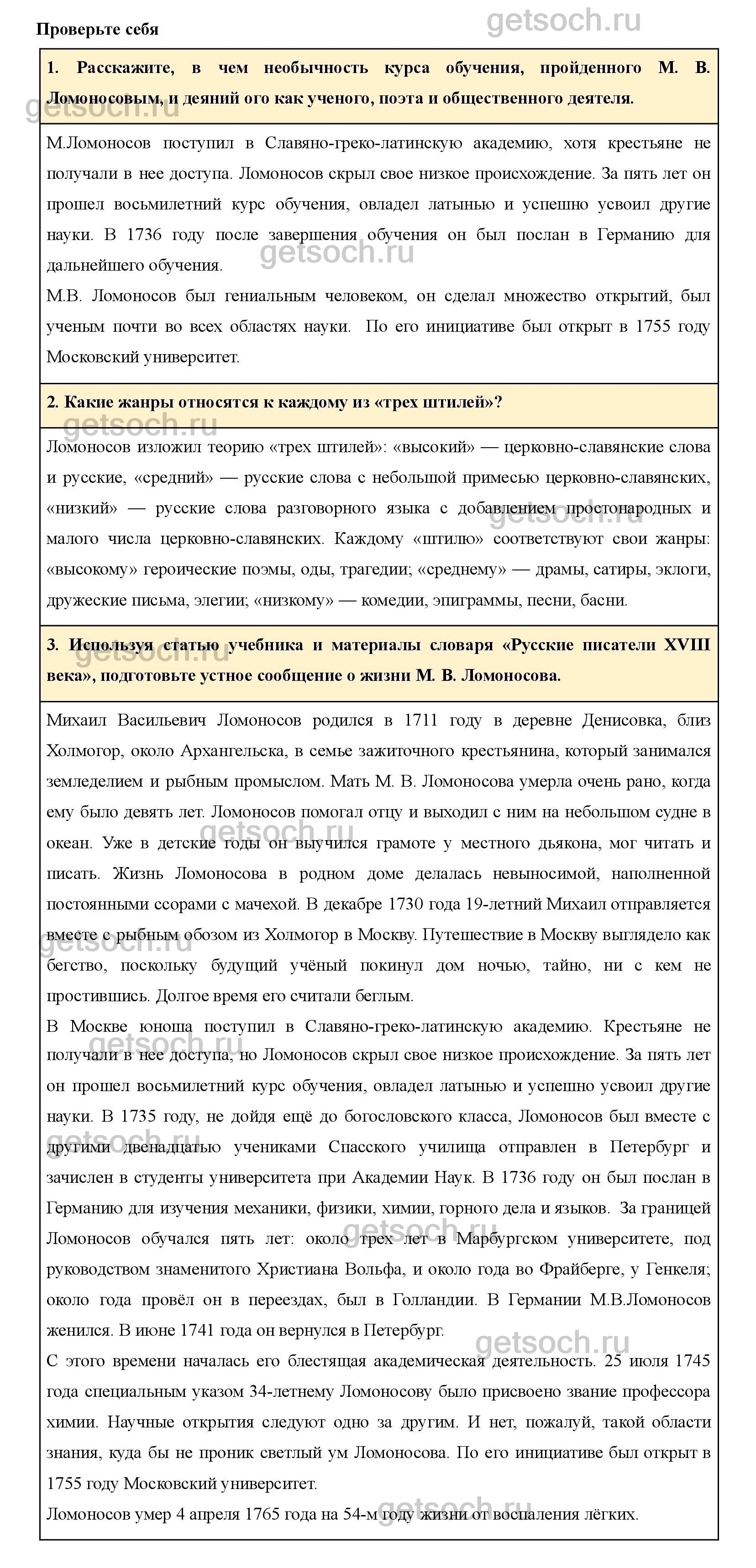 3. Используя статью учебника и материалы словаря «Русские писатели XVIII века», подготовьте устное сообщение о жизни М. В. Ломоносова.