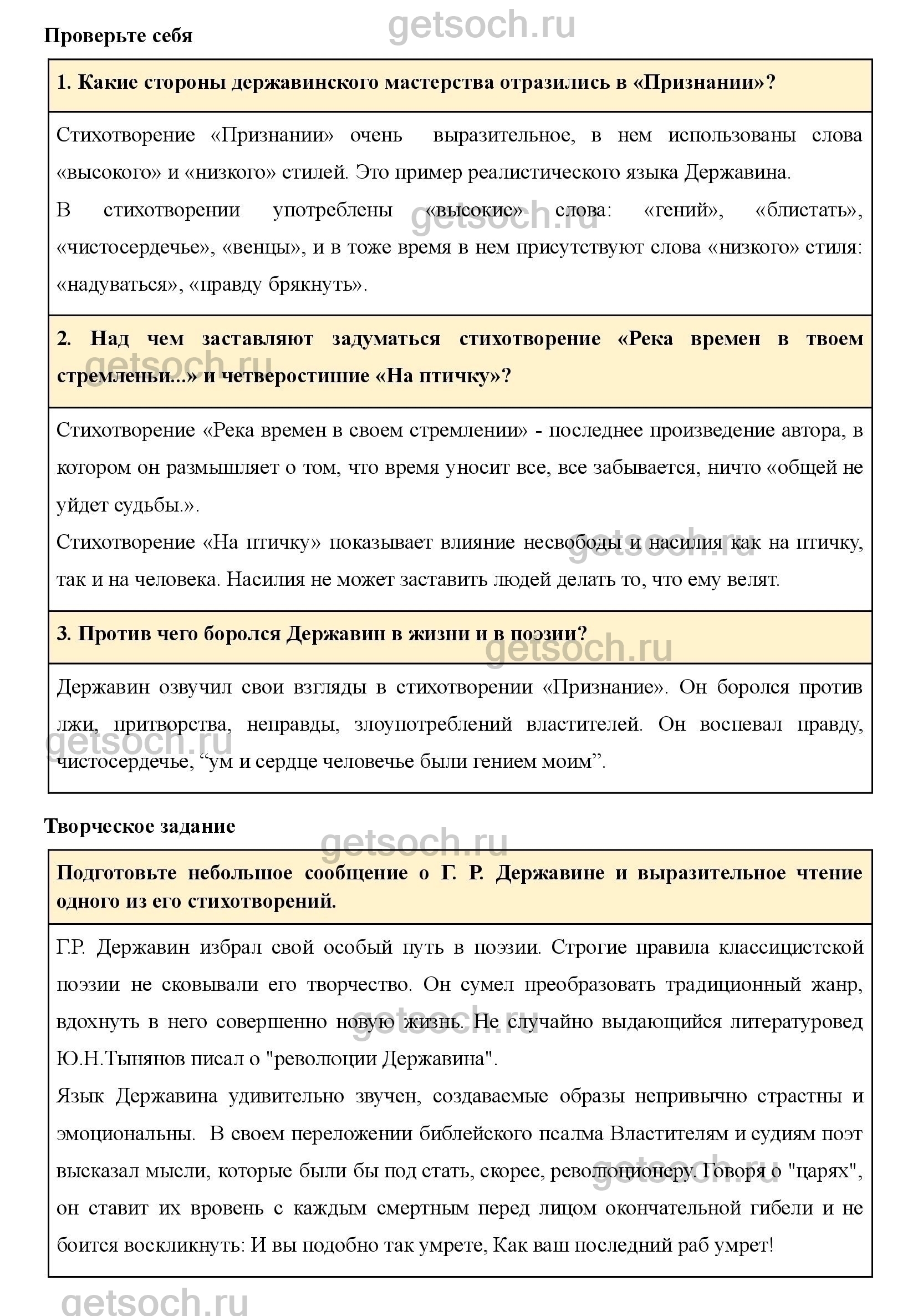 1. Какие стороны державинского мастерства отразились в «Признании»?