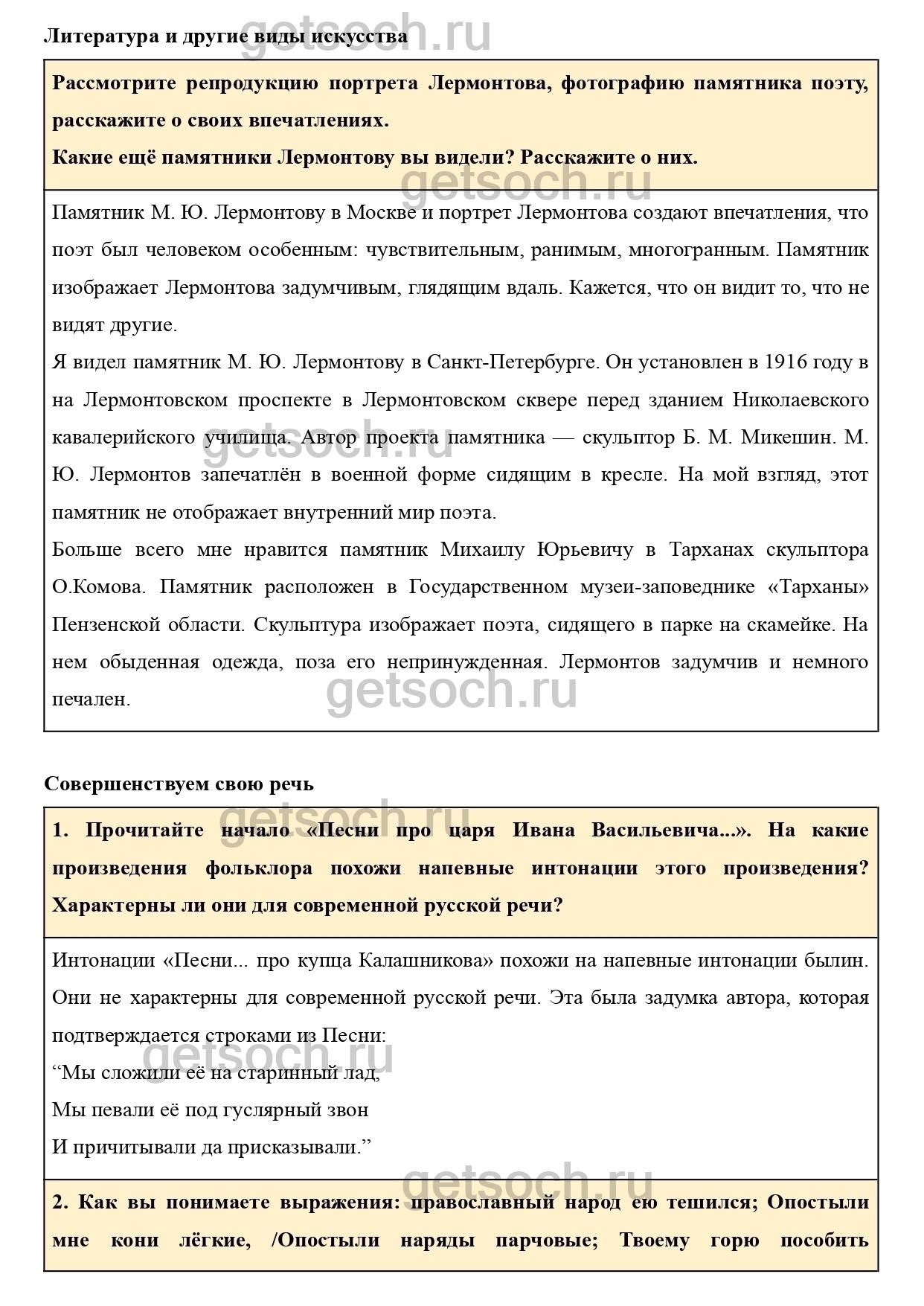 Рассмотрите репродукцию портрета Лермонтова, фотографию памятника поэту, расскажите о своих впечатлениях.