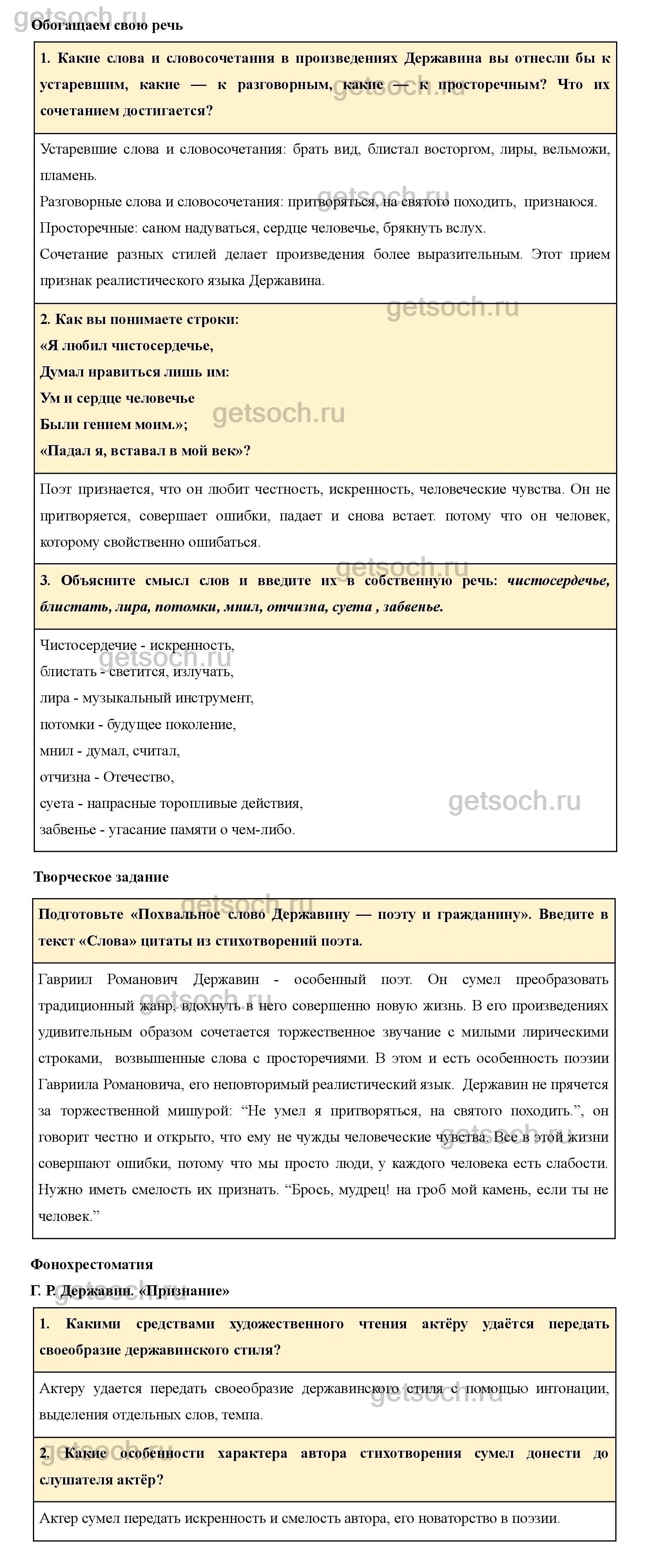 1. Какие слова и словосочетания в произведениях Державина вы отнесли бы к устаревшим, какие — к разговорным, какие — к просторечным? Что их сочетанием достигается?