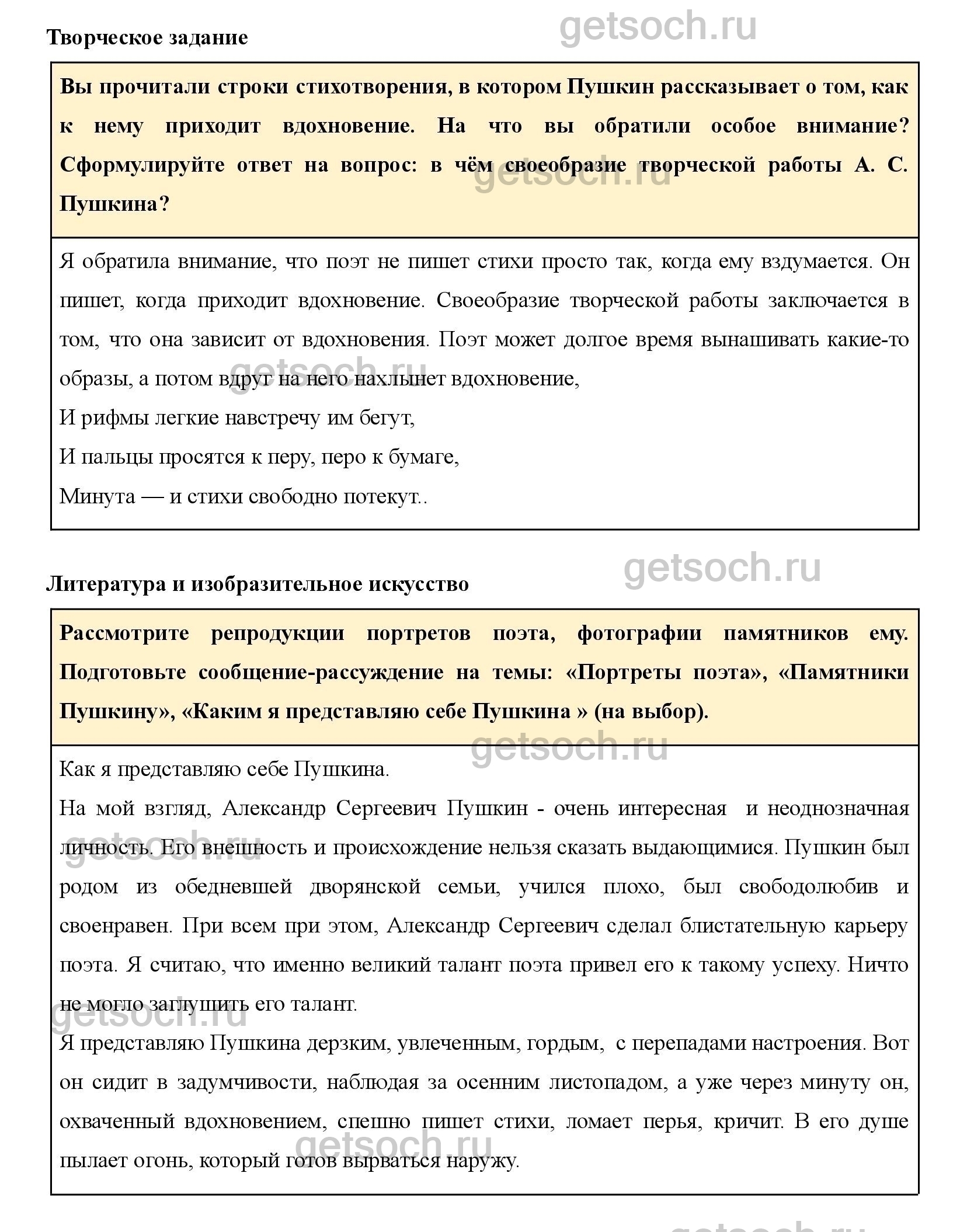 Рассмотрите репродукции портретов поэта, фотографии памятников ему. Подготовьте сообщение-рассуждение на темы: «Портреты поэта», «Памятники Пушкину», «Каким я представляю себе Пушкина » (на выбор).