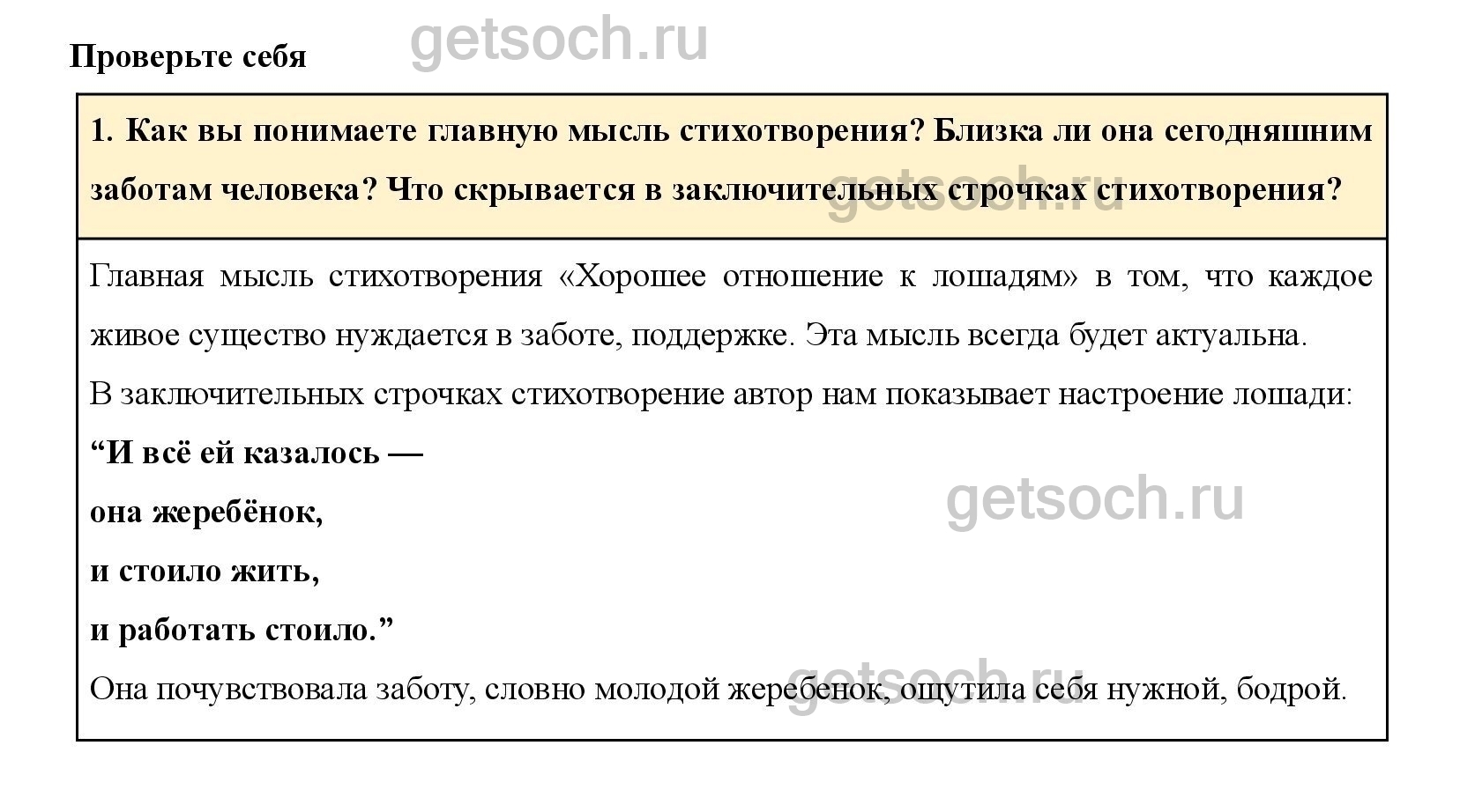 1. Как вы понимаете главную мысль стихотворения? Близка ли она сегодняшним заботам человека? Что скрывается в заключительных строчках стихотворения?