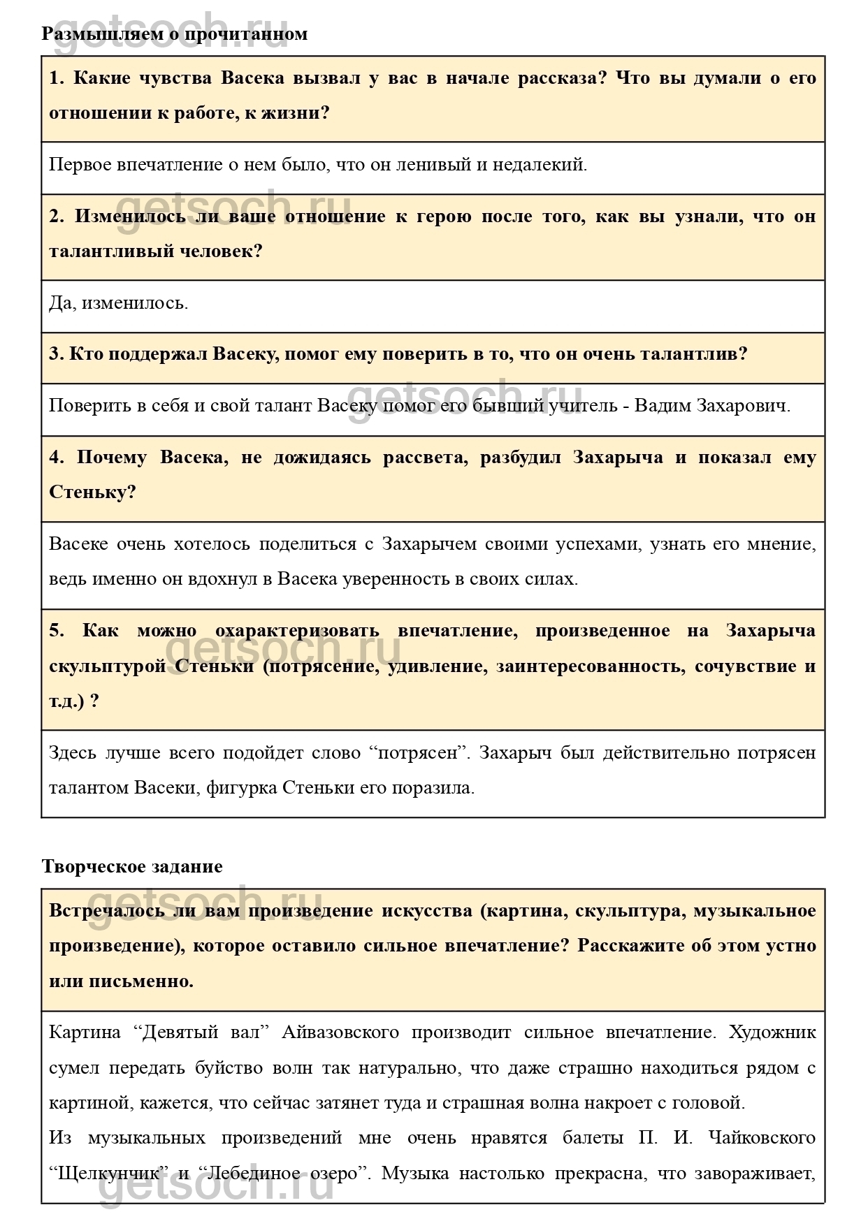 5. Как можно охарактеризовать впечатление, произведенное на Захарыча скульптурой Стеньки (потрясение, удивление, заинтересованность, сочувствие и т.д.) ?