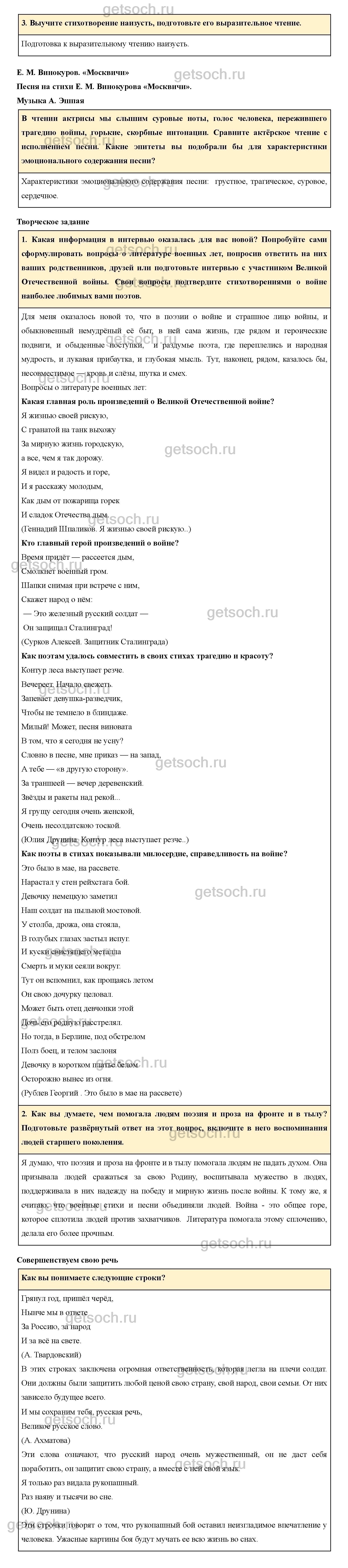 1. Какая информация в интервью оказалась для вас новой? Попробуйте сами сформулировать вопросы о литературе военных лет, попросив ответить на них ваших родственников, друзей или подготовьте интервью с участником Великой Отечественной войны. Свои вопросы подтвердите стихотворениями о войне наиболее любимых вами поэтов.
