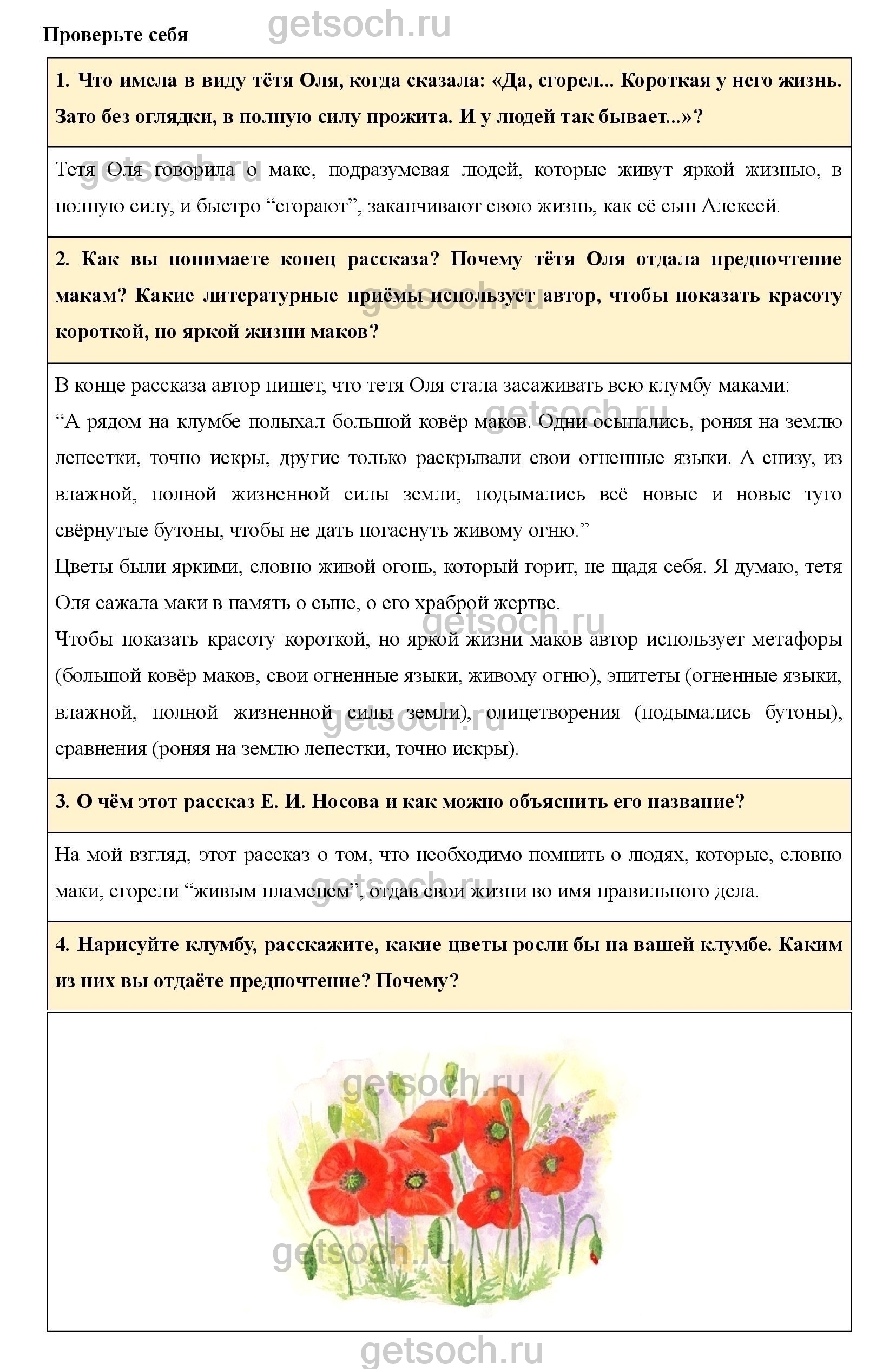 2. Как вы понимаете конец рассказа? Почему тётя Оля отдала предпочтение макам? Какие литературные приёмы использует автор, чтобы показать красоту короткой, но яркой жизни маков?