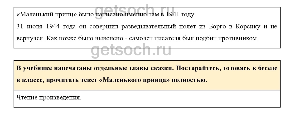 В учебнике напечатаны отдельные главы сказки. Постарайтесь, готовясь к беседе в классе, прочитать текст «Маленького принца» полностью.