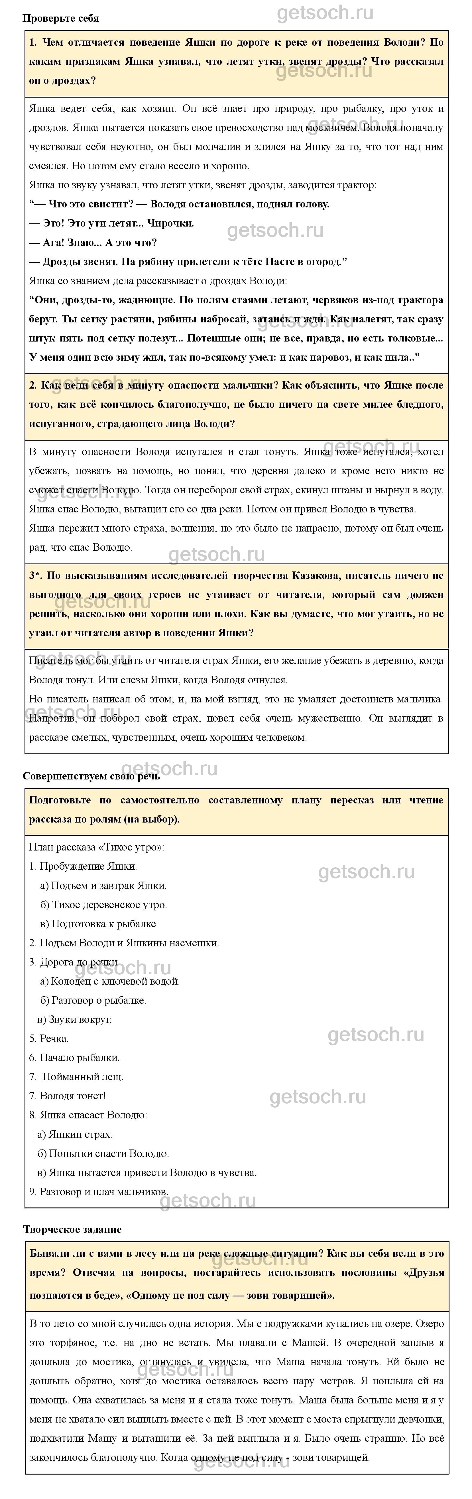 1. Чем отличается поведение Яшки по дороге к реке от поведения Володи? По каким признакам Яшка узнавал, что летят утки, звенят дрозды? Что рассказал он о дроздах?