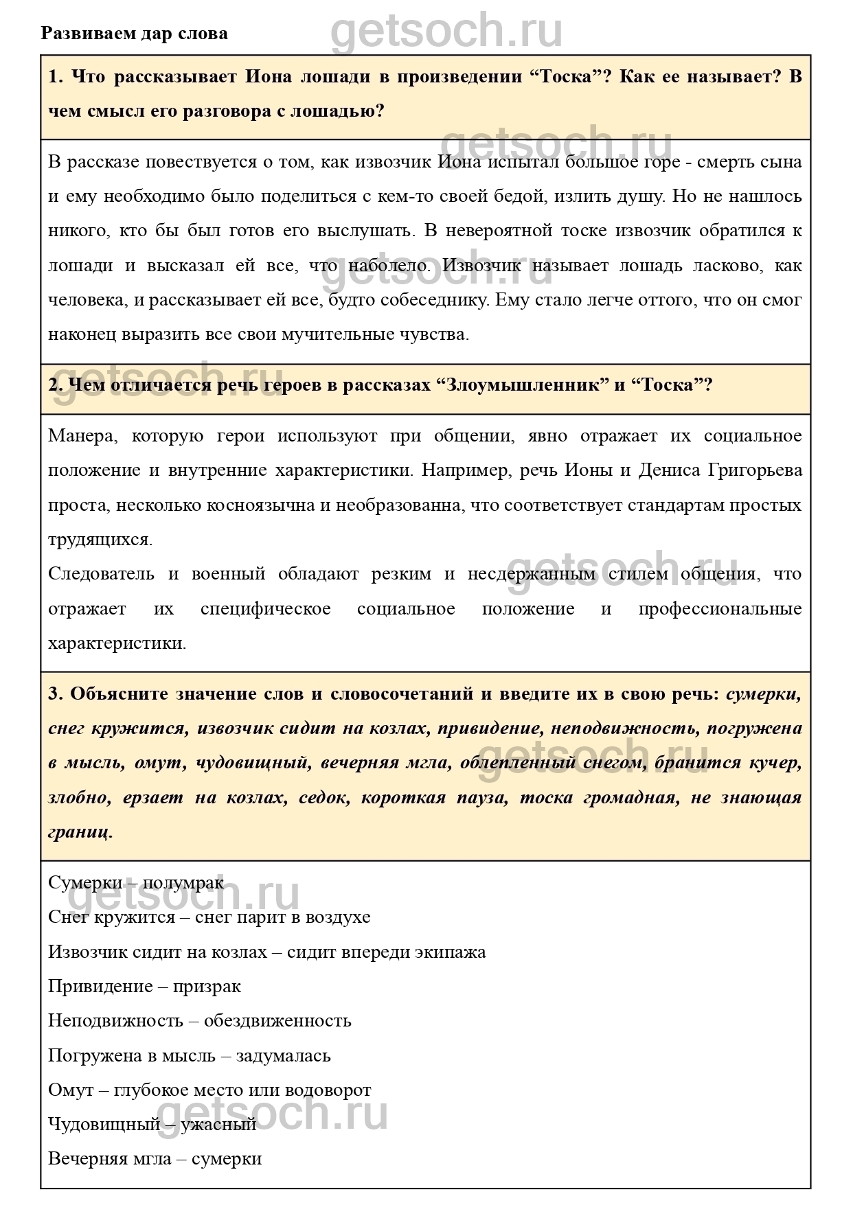 3. Объясните значение слов и словосочетаний и введите их в свою речь: сумерки, снег кружится, извозчик сидит на козлах, привидение, неподвижность, погружена в мысль, омут, чудовищный, вечерняя мгла, облепленный снегом, бранится кучер, злобно, ерзает на козлах, седок, короткая пауза, тоска громадная, не знающая границ.