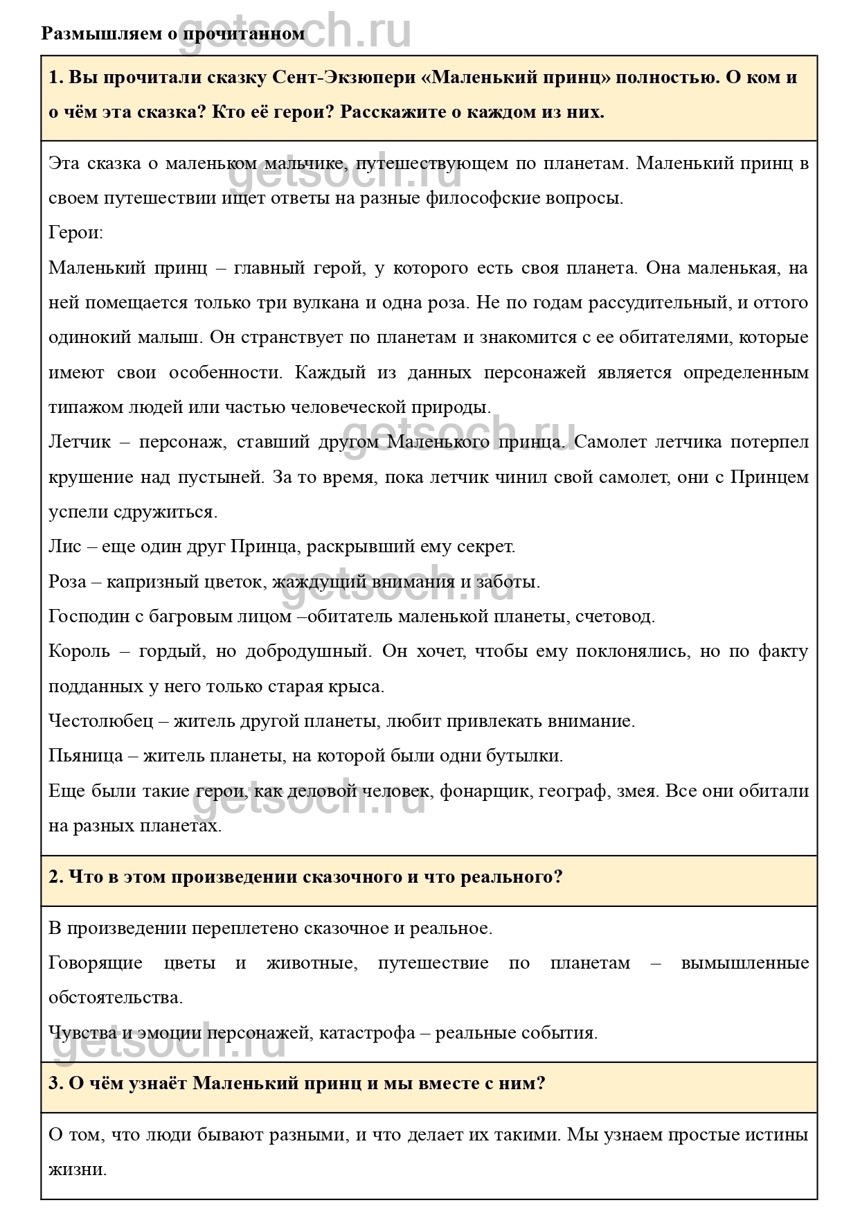 1. Вы прочитали сказку Сент-Экзюпери «Маленький принц» полностью. О ком и