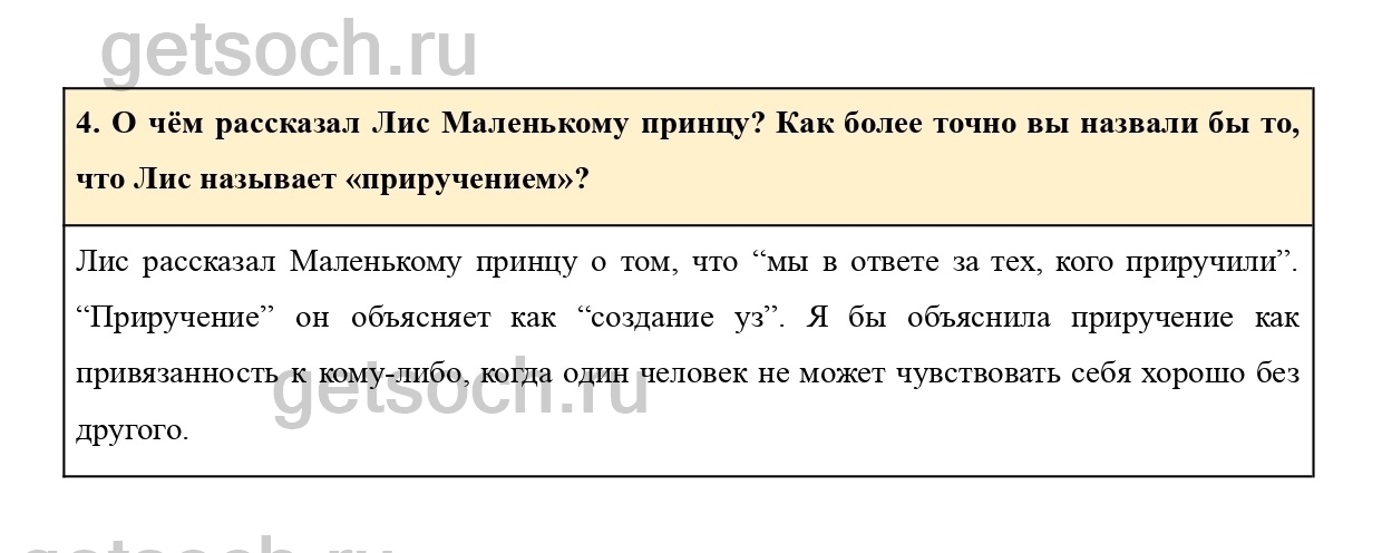 4. О чём рассказал Лис Маленькому принцу? Как более точно вы назвали бы то, что Лис называет «приручением»?