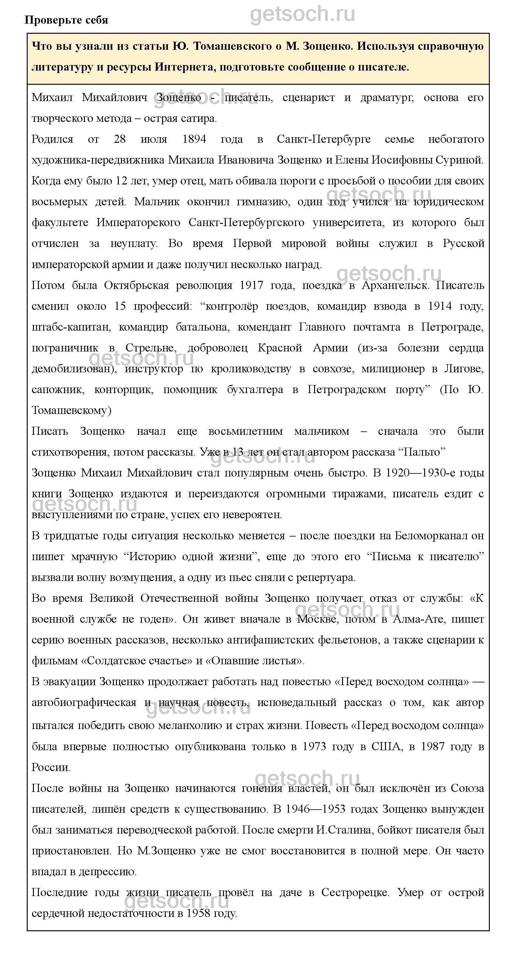 Что вы узнали из статьи Ю. Томашевского о М. Зощенко. Используя справочную литературу и ресурсы Интернета, подготовьте сообщение о писателе.